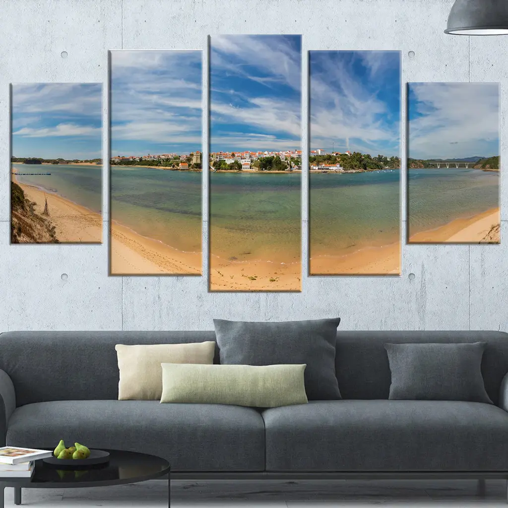 "Portuguese Maritime Village Panorama" Seashore Wall Art, 5 Panels, 60"x32"