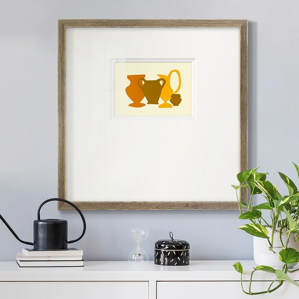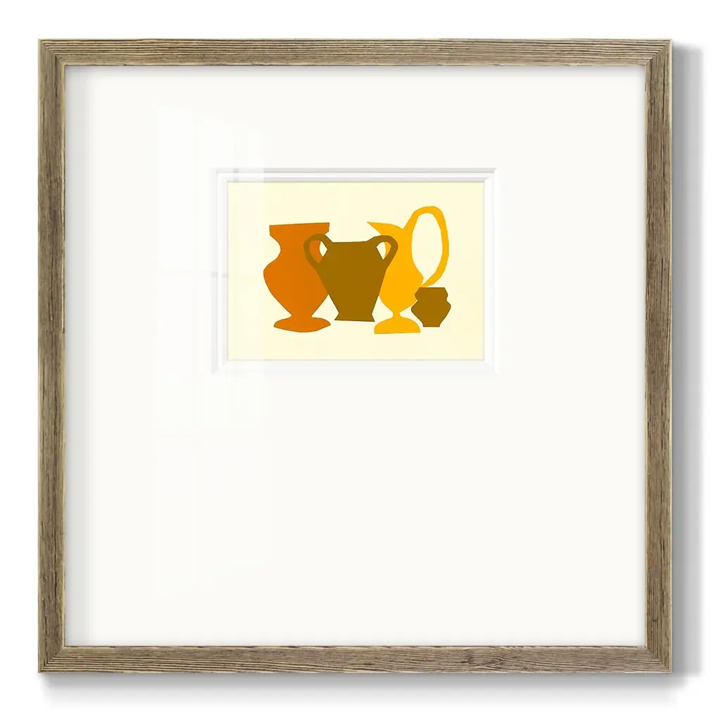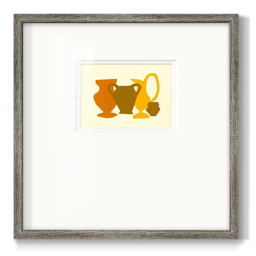 Posing Pottery IIPremium Framed Print A framed cold pressed paper print featuring superior double matting and quality frame. 2 SIZES AVAILABLE 16''X16''' - Overall Size 20''X20''' - Overall Size Each piece is made to order. Each piece comes with hanging hardware. Made in the USA Ready to Hang Giclee Paper Print Plexiglass Beveled Matt Board Double Matte Board