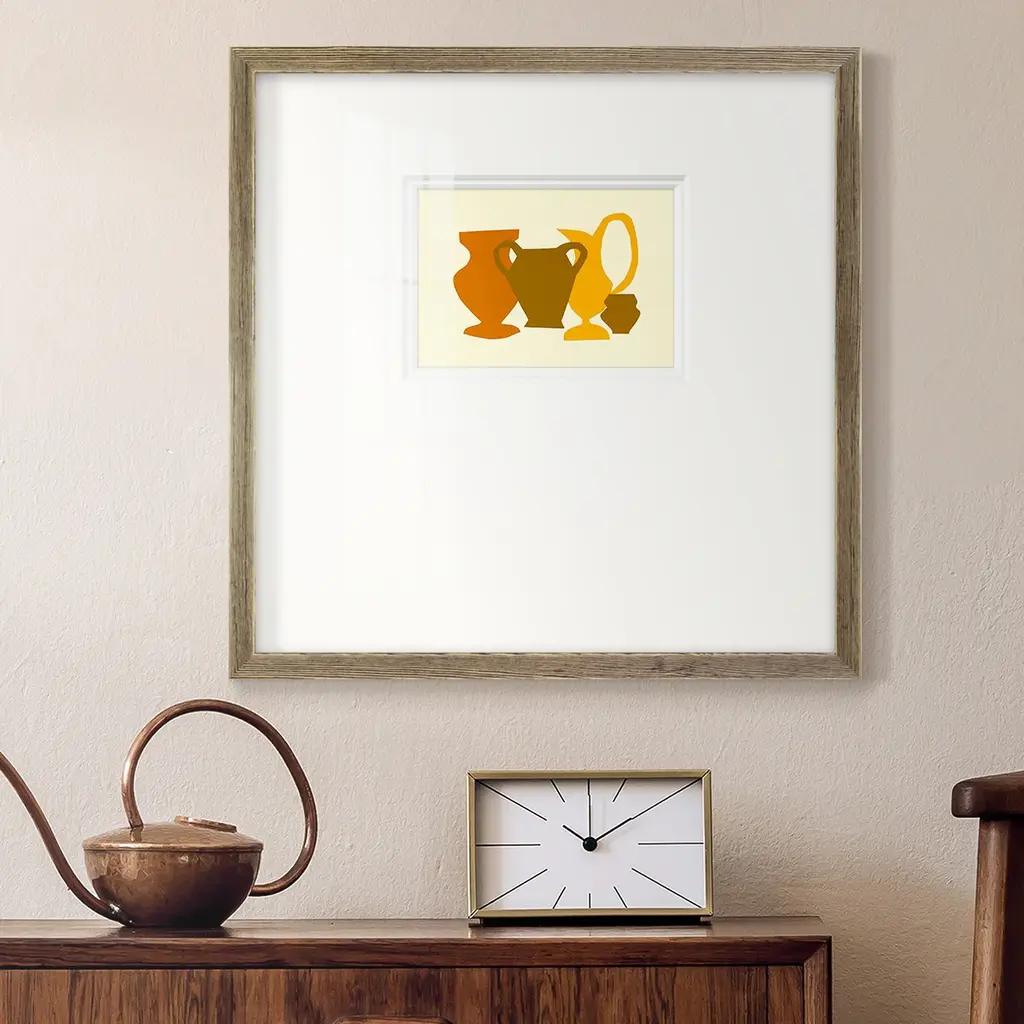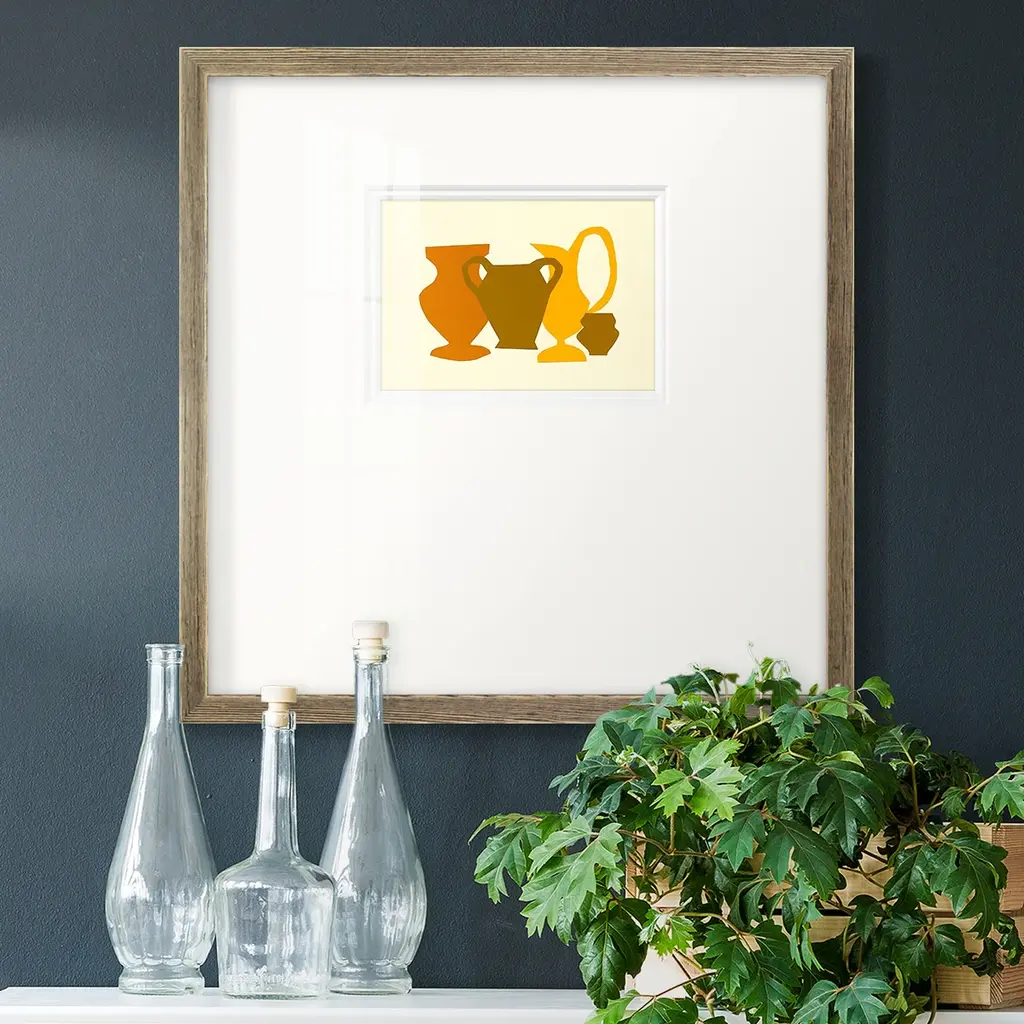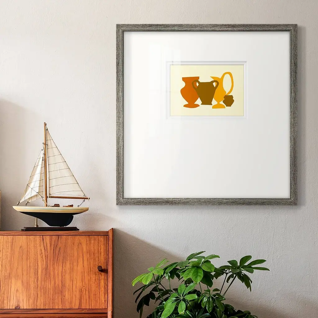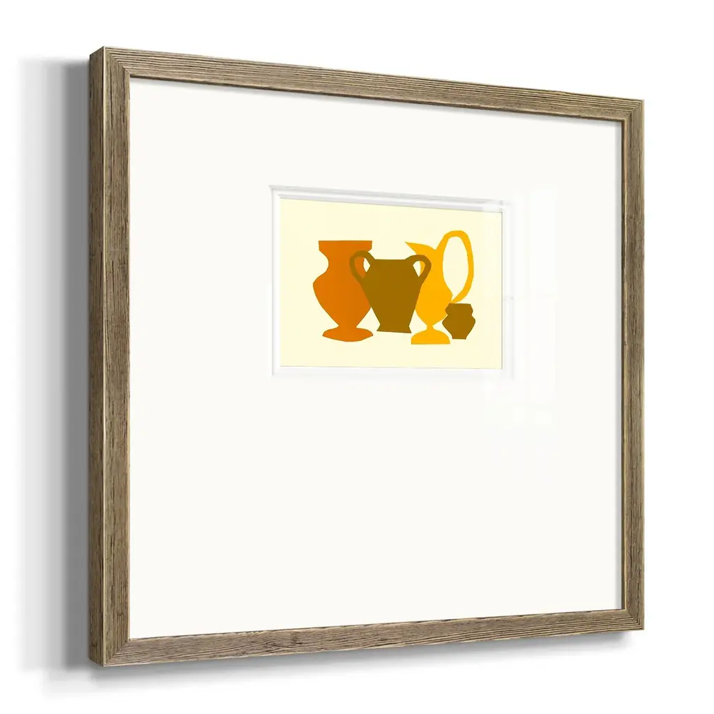 Posing Pottery IIPremium Framed Print A framed cold pressed paper print featuring superior double matting and quality frame. 2 SIZES AVAILABLE 16''X16''' - Overall Size 20''X20''' - Overall Size Each piece is made to order. Each piece comes with hanging hardware. Made in the USA Ready to Hang Giclee Paper Print Plexiglass Beveled Matt Board Double Matte Board