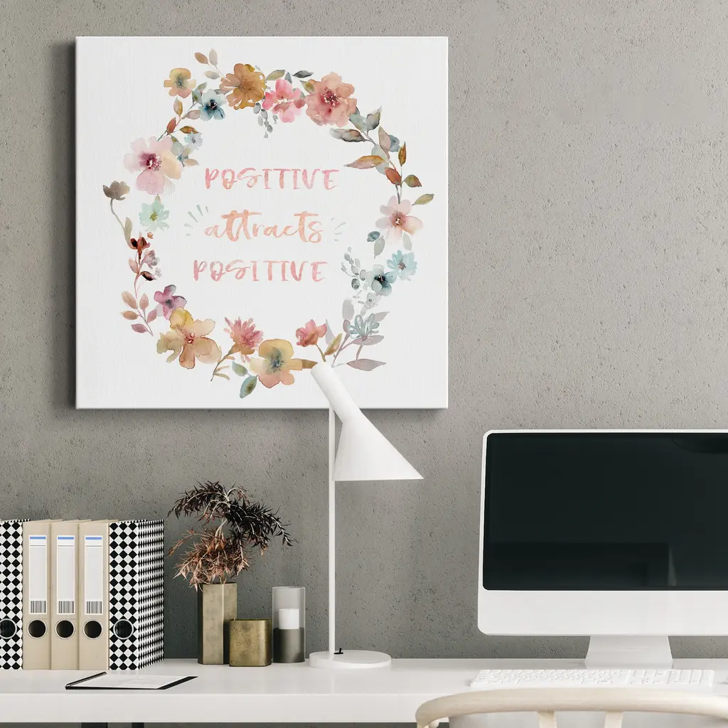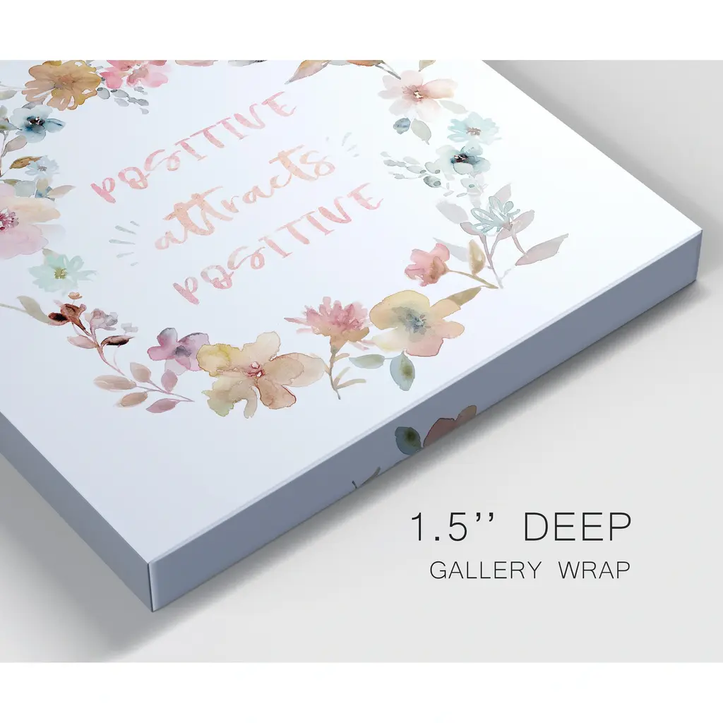 Positive Attracts Positive-Premium Gallery Wrapped Canvas - Ready to Hang A premium hand stretched gallery wrapped canvas print created to last. Featuring a beveled a solid wood stretcher bar, each piece comes ready to hand 5 SIZES AVAILABLE 10''X10'' - Overall Size 16''x16'' - Overall Size 24''x24'' - Overall Size 32''x32'' - Overall Size 40''x40'' - Overall Size Each piece is made to order. Built to Last Each piece comes ready to hang Solid wood stretcher Fade and Water resistant Made domestically