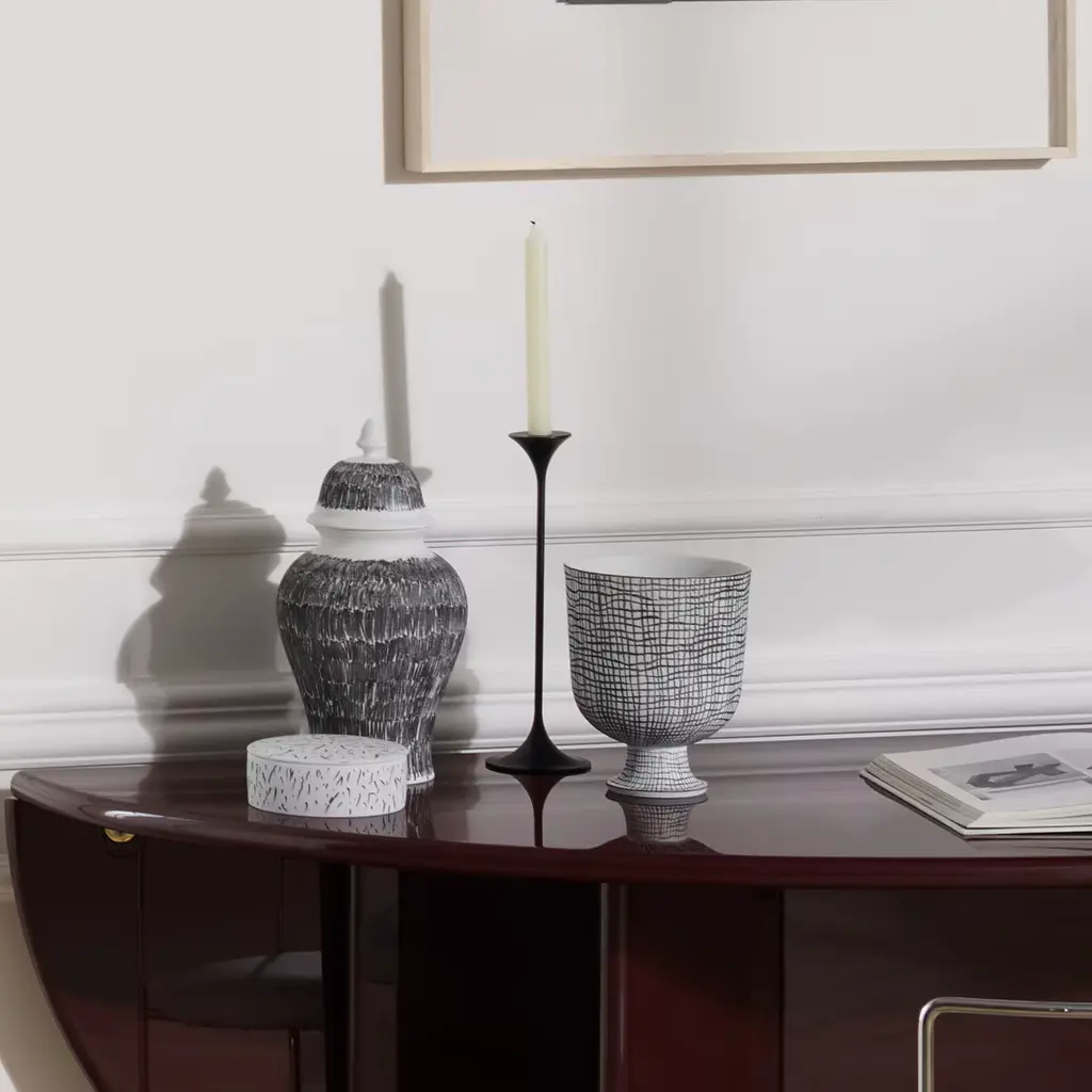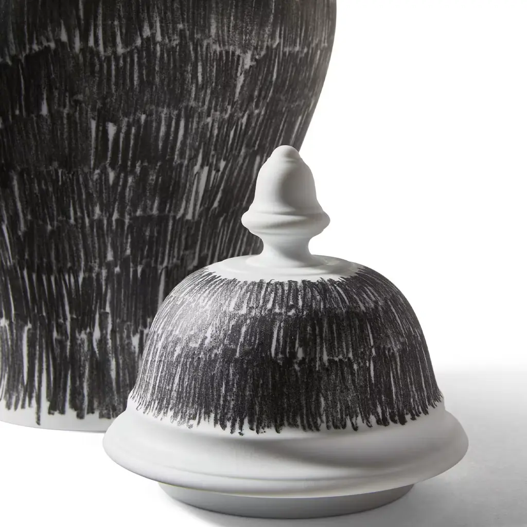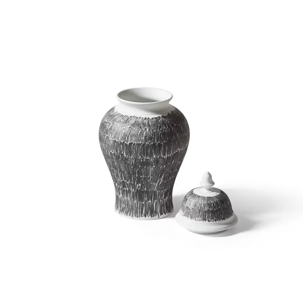 An artful solution for collecting cookies, this fine porcelain potiche belongs to the Post Scriptum Collection Formafantasma designed as a contemporary take on and archetypal form found in the Manifattura Ginori's archive. Secure black brushstrokes trace the captivating, seemingly scribbled motif, which results from a careful manual painting process.