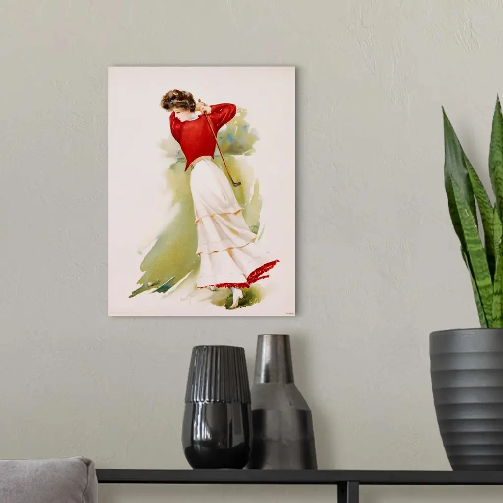 Poster Depicting A Woman Playing Golf wall art for home and office decor. Discover canvas art prints, photos, mural, big canvas art and framed wall art in GreatBigCanvas.com's varied collections.