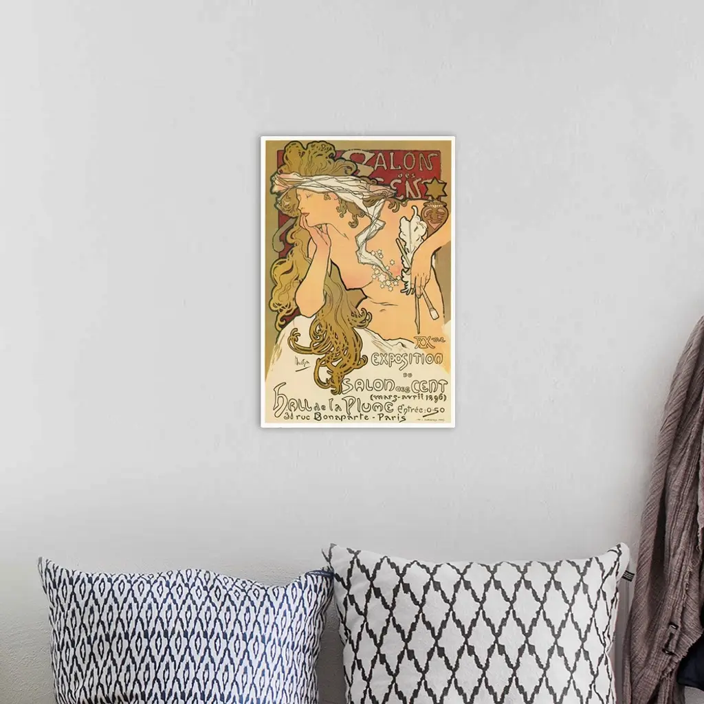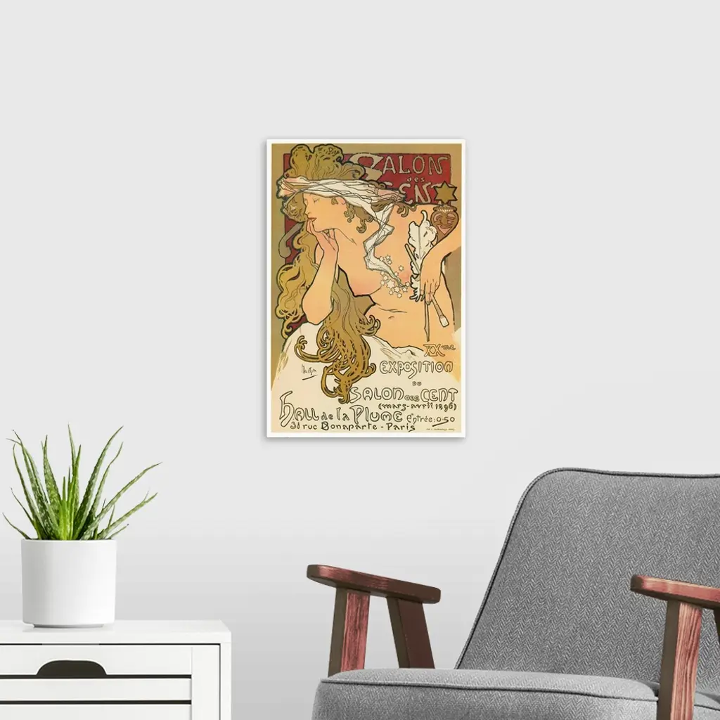 Poster for the 20th exhibition at the Salon des Cent in Paris, France. Lithograph by Alfons Maria Mucha, 1896.