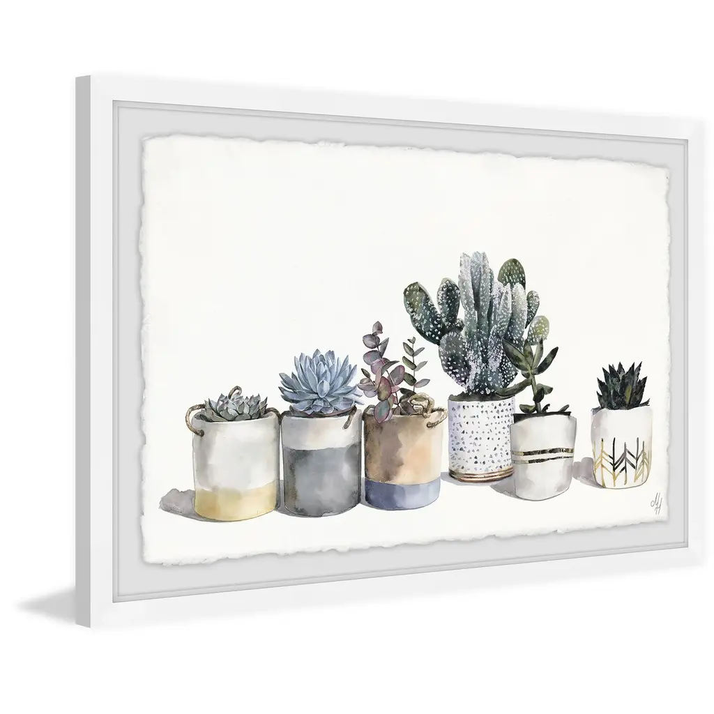 'Pots Of Pricklies' Framed Painting Print - Multi-Color - 12 X 8