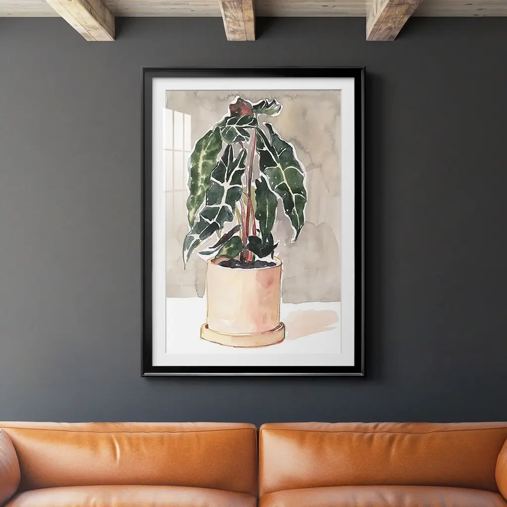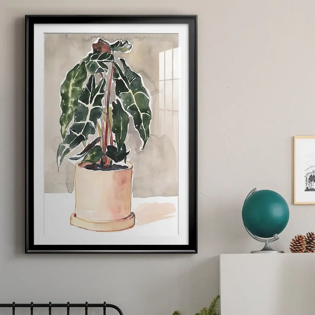 Potted Houseplant I Premium Framed Print - Ready to Hang A Premium Framed Print created to last. Framed in distressed wood and available in an array of sizes and colors Featuring a beveled a solid wood stretcher bar, each piece comes ready to hand 4 SIZES AVAILABLE 30.5''X42.5'' - Overall Size 26.5'X36.5'' - Overall Size 22.5''x30.5'' - Overall Size 18.5''x24.5'' - Overall Size Each piece is made to order. Each piece comes with hanging hardware. Made in the USA Ready to Hang Giclee Paper Print Acrylic Glass Beveled Matt Board
