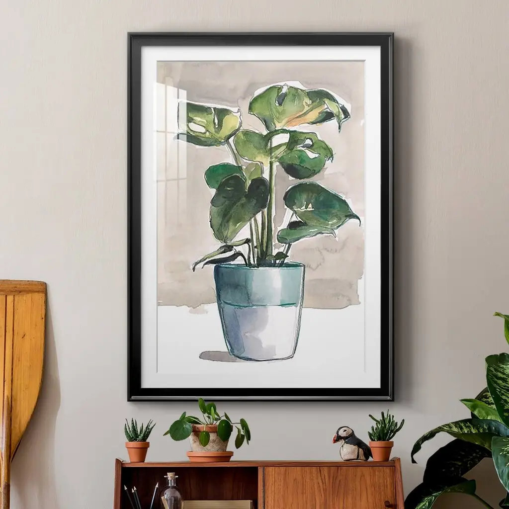 Potted Houseplant II Premium Framed Print - Ready to Hang A Premium Framed Print created to last. Framed in distressed wood and available in an array of sizes and colors Featuring a beveled a solid wood stretcher bar, each piece comes ready to hand 4 SIZES AVAILABLE 30.5''X42.5'' - Overall Size 26.5'X36.5'' - Overall Size 22.5''x30.5'' - Overall Size 18.5''x24.5'' - Overall Size Each piece is made to order. Each piece comes with hanging hardware. Made in the USA Ready to Hang Giclee Paper Print Acrylic Glass Beveled Matt Board