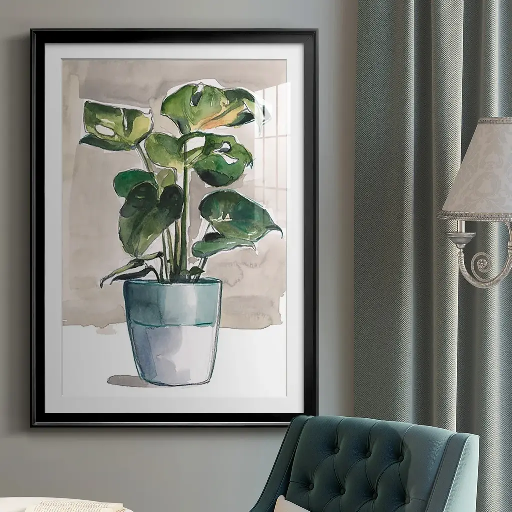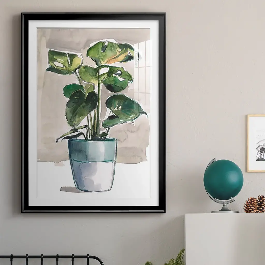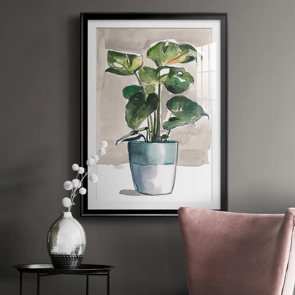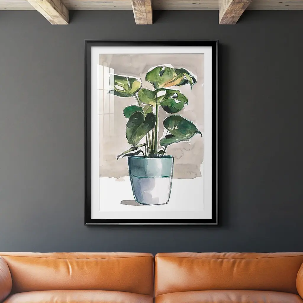Potted Houseplant II Premium Framed Print - Ready to Hang A Premium Framed Print created to last. Framed in distressed wood and available in an array of sizes and colors Featuring a beveled a solid wood stretcher bar, each piece comes ready to hand 4 SIZES AVAILABLE 30.5''X42.5'' - Overall Size 26.5'X36.5'' - Overall Size 22.5''x30.5'' - Overall Size 18.5''x24.5'' - Overall Size Each piece is made to order. Each piece comes with hanging hardware. Made in the USA Ready to Hang Giclee Paper Print Acrylic Glass Beveled Matt Board