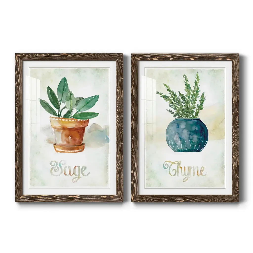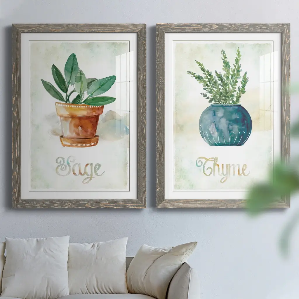 Potted Sage-Premium Framed Print - Ready to Hang Framed in distressed wood and available in an array of sizes and colors Each piece is joined and assembled by hand and comes ready to hang 2 INCH BEVELED MATTE BOARD PLEXIGLASS COVERING READY TO HANG MADE IN THE USA SOLID WOOD FRAME MADE IN USA FADE RESISTANT GICLEE PRINTING on Canvas or Paper