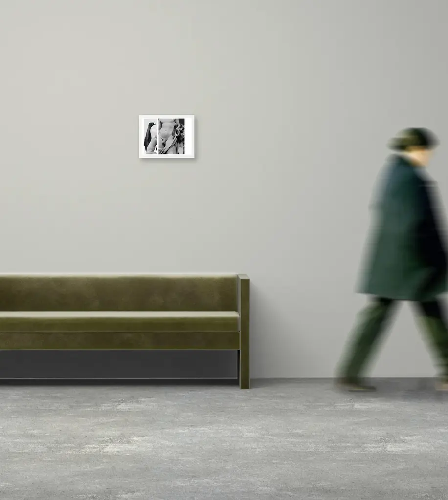 An exclusive, limited-edition artwork by Berlin-based photographer Ignazio Lozano. Ignazio Lozano’s POV series is an exploration of the male figure. By abstracting the viewers’ points of view through movement and different materials, he redraws the male form - thus becoming a form of gestalt. Referencing ancient Greek sculpture, the figures exude strength and masculinity - they are seemingly unbreakable. Yet over time, they become broken and worn, revealing their fragility. Size: 12" x 16" or 18" x 24" Medium: Photographic print on Moab Slickrock Metallic Pearl Paper Framing: Unframed, Black, White or Plexibox Edition Number: First Edition Edition Size: 15 Year of Original: 2018 Authentication: Certificate of Authenticity signed by Tariq Dixon, Founder of TRNK.