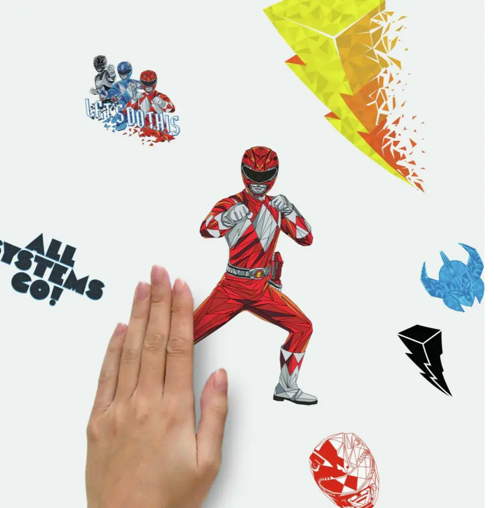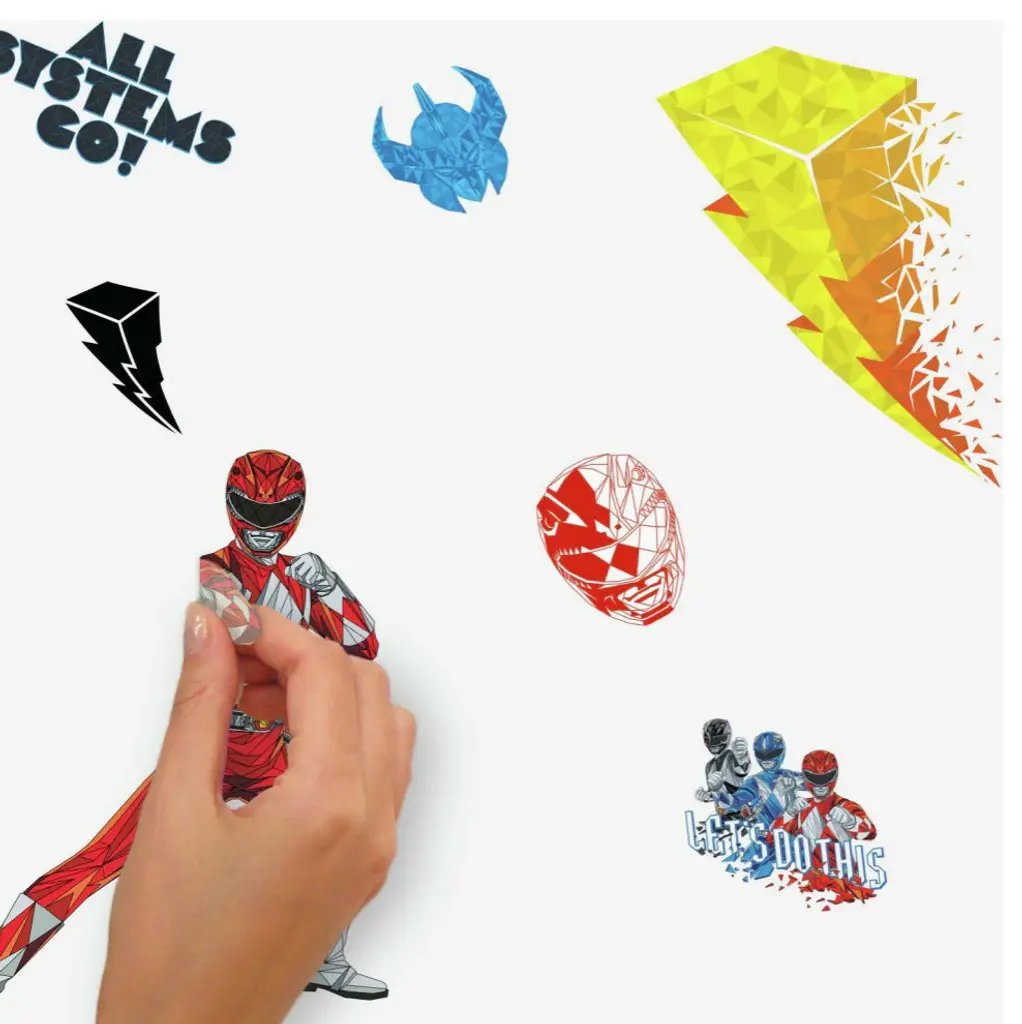 Powers Unite! Bring the Power of Water, Power of Light and more to your space with Power Rangers Peel and Stick Wall Decals by RoomMates. This wall sticker set is a fun and creative way to transform any room in seconds. To apply, simply peel and stick decals to any smooth, flat surface. Remove, reposition and reuse as often as needed. Created with high quality vinyl that''s made to last, walls stay completely safe, and sticky residue is never left behind. It''s fast, fun and affordable wall decor at it''s best. Includes 24 decals size(s) - 3.17 inches x 1.85 inches to 8.51 inches x 10.36 inches. 4 Sheets 9 inches x 17.375 inches.