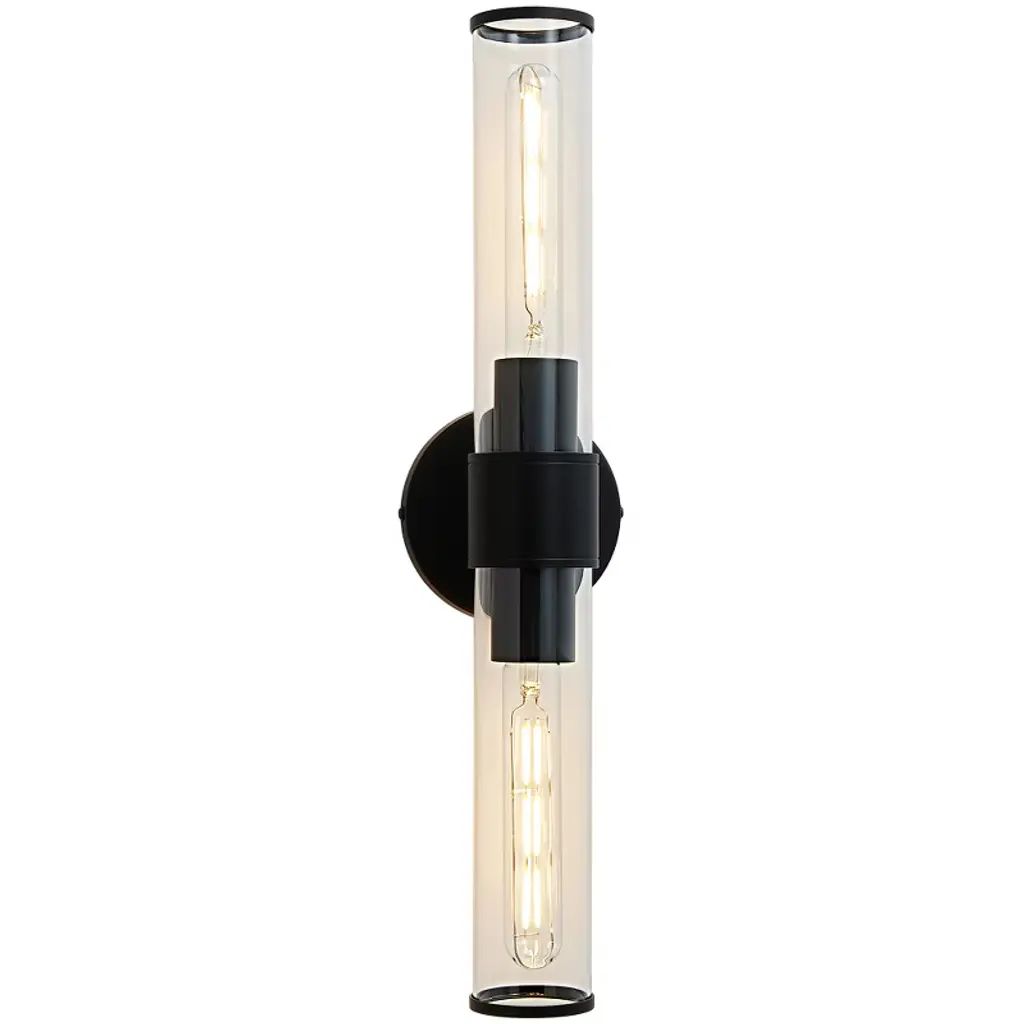 Powlig 19.84" Black Modern Wall Sconce - 2-light Dimmable Bathroom Vanity Light With Transparent Glass Shade