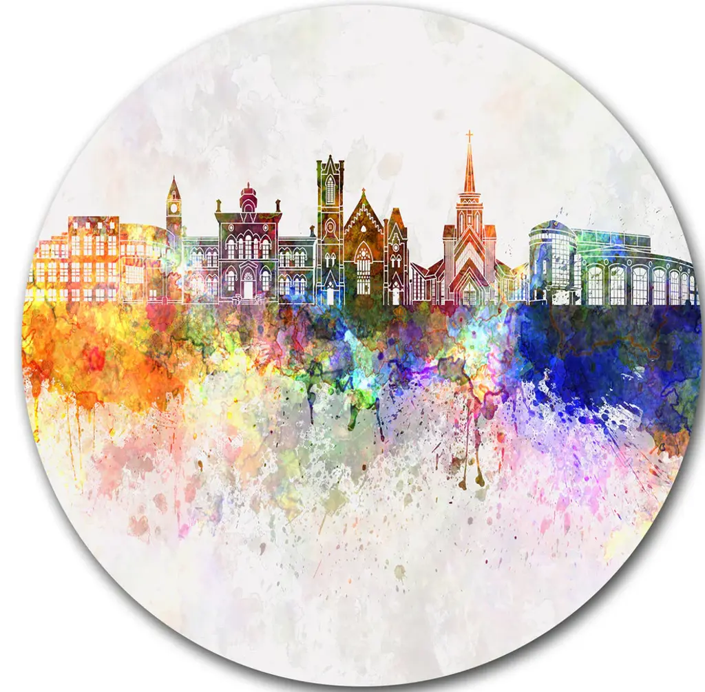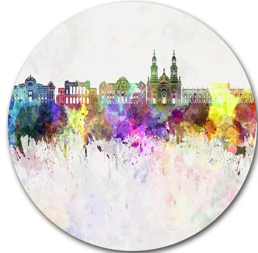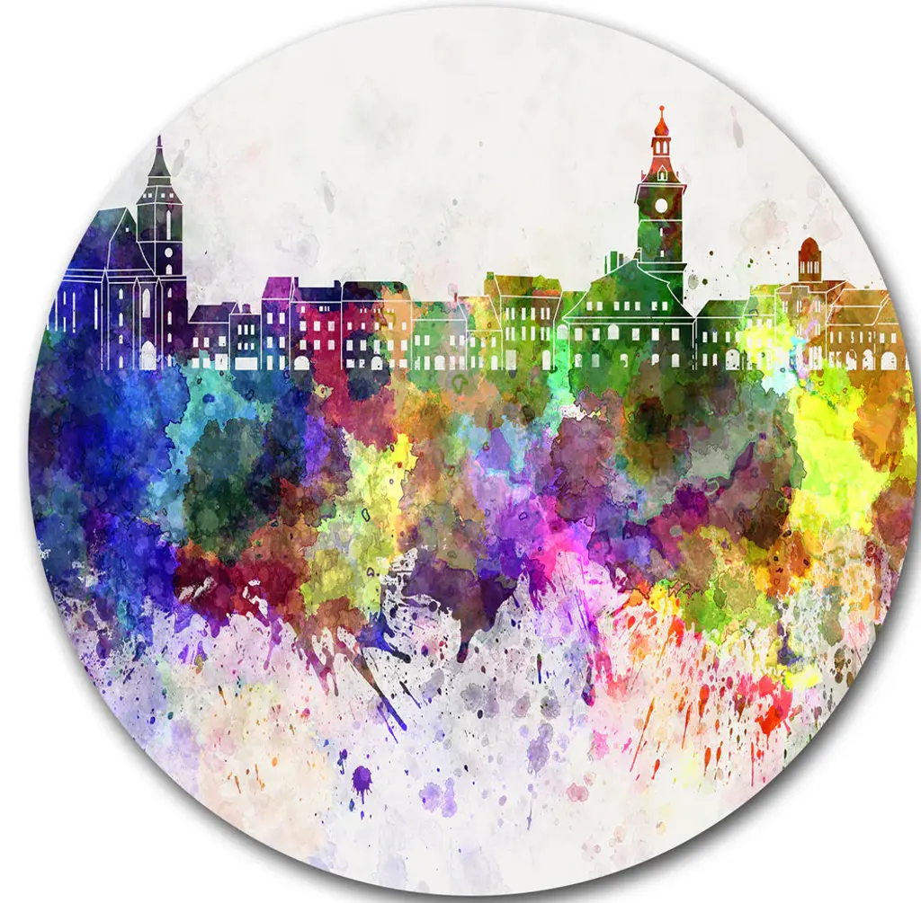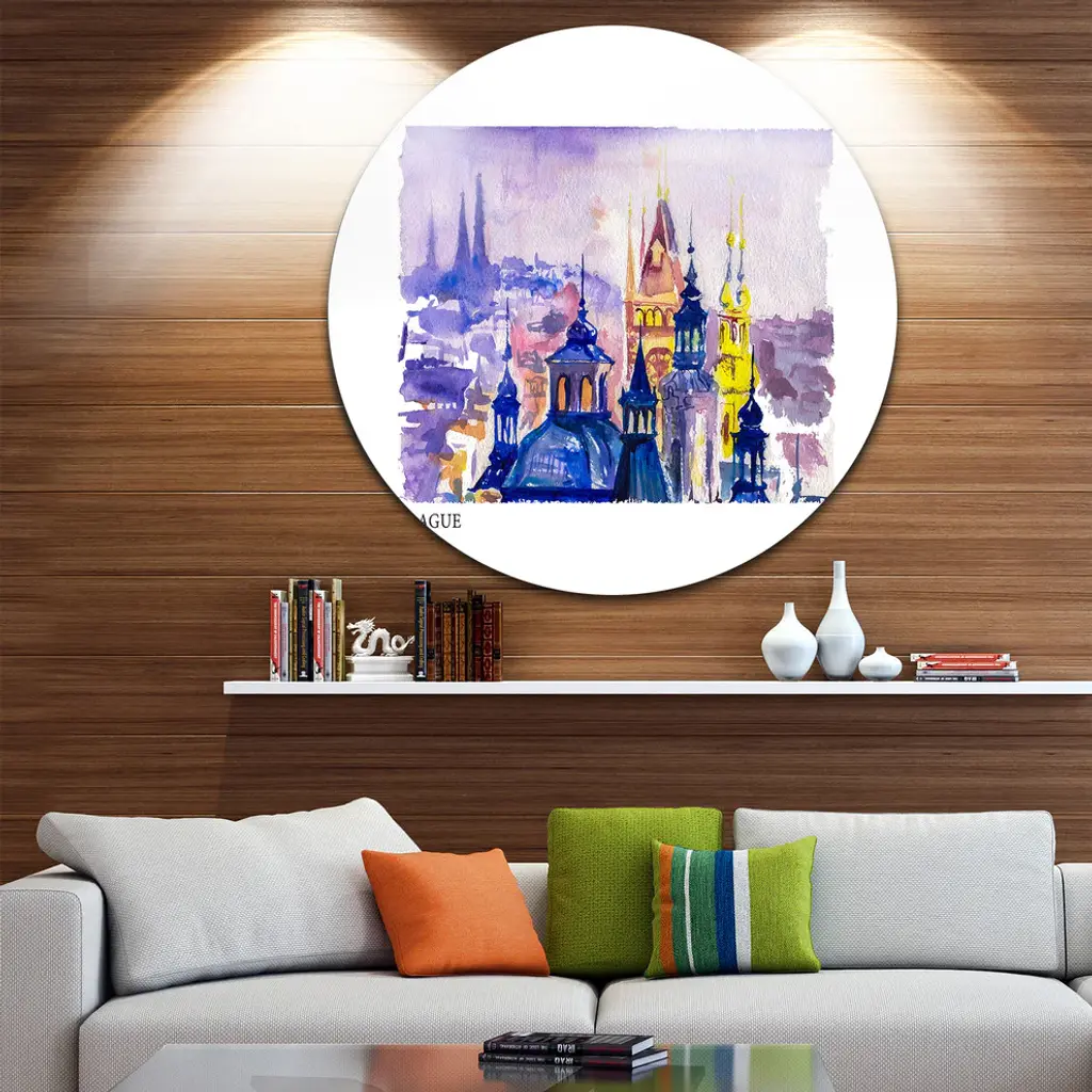 Bring Contemporary Abstraction to your home with this large Circle Metal wall art. This Prague Vector Illustration Metal Artwork makes it the focal point of any room or office. - White Gloss Coating ensures colors are extra vibrant with light reflection.- Aluminum grade Sheet Metal with 1 inch mounting frame on the back giving the illusion that the artwork is floating on the wall..- Mounting Brackets are included along with instructions.- High Quality Digital images are created directly into a glossy aluminum panel producing a stunning and captivating print into the glossy finish of the metal.- Water, Fire and Scratch resistant HD Aluminum panels.- Looks better than any photo paper and guaranteed to last at least 20 years- Easy to clean with a microfiber cloth. Colors are far superior to regular Canvas Art. - Easy to Hang