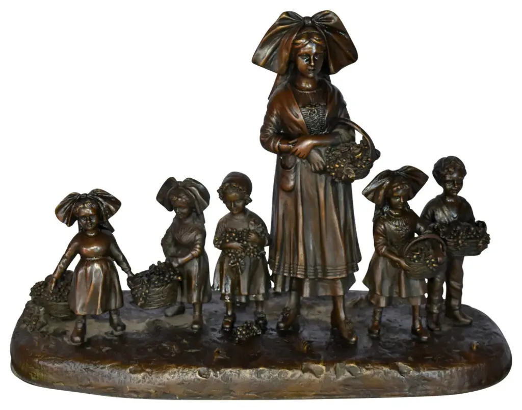 Pre School-Gathering In Vineyard Grapes Bronze Statue Size: 19" X 8" X 14"h