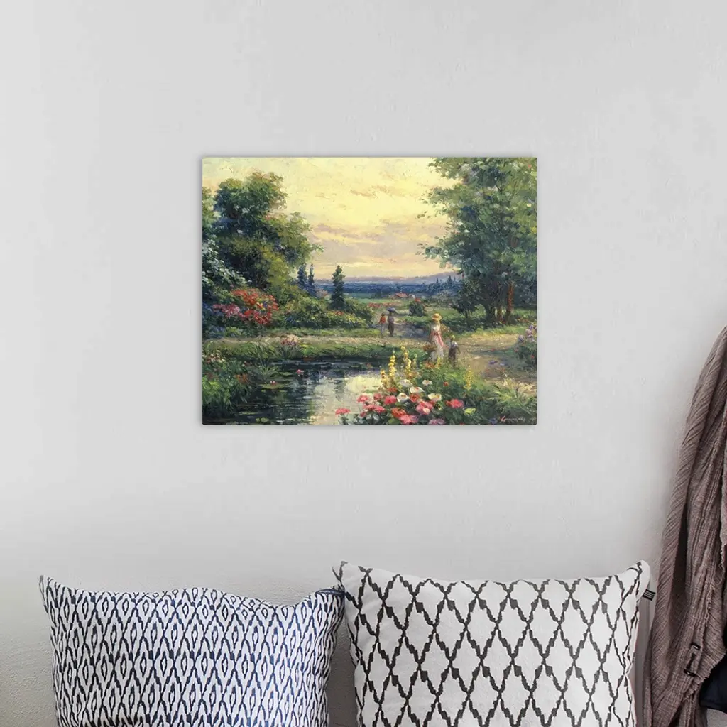 Contemporary painting of an idyllic countryside scene.
