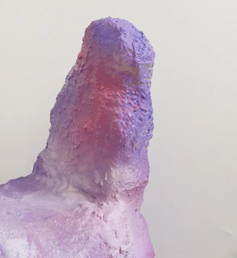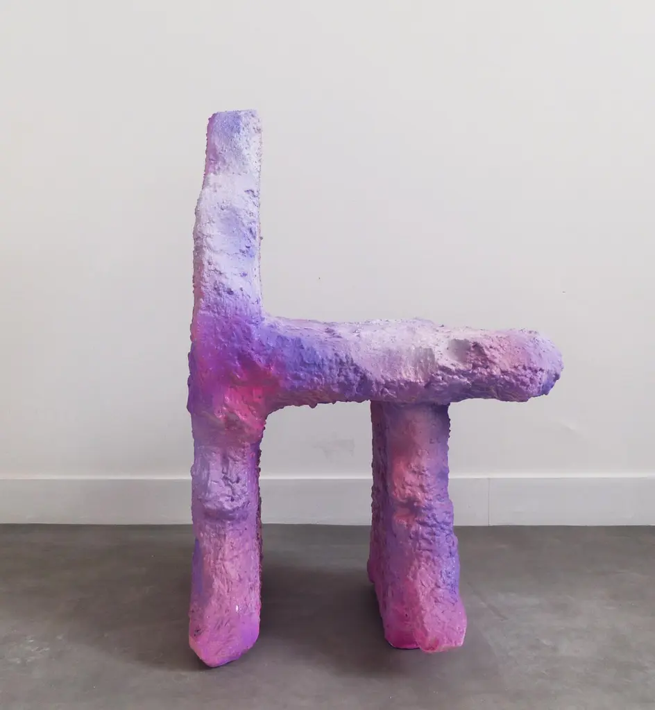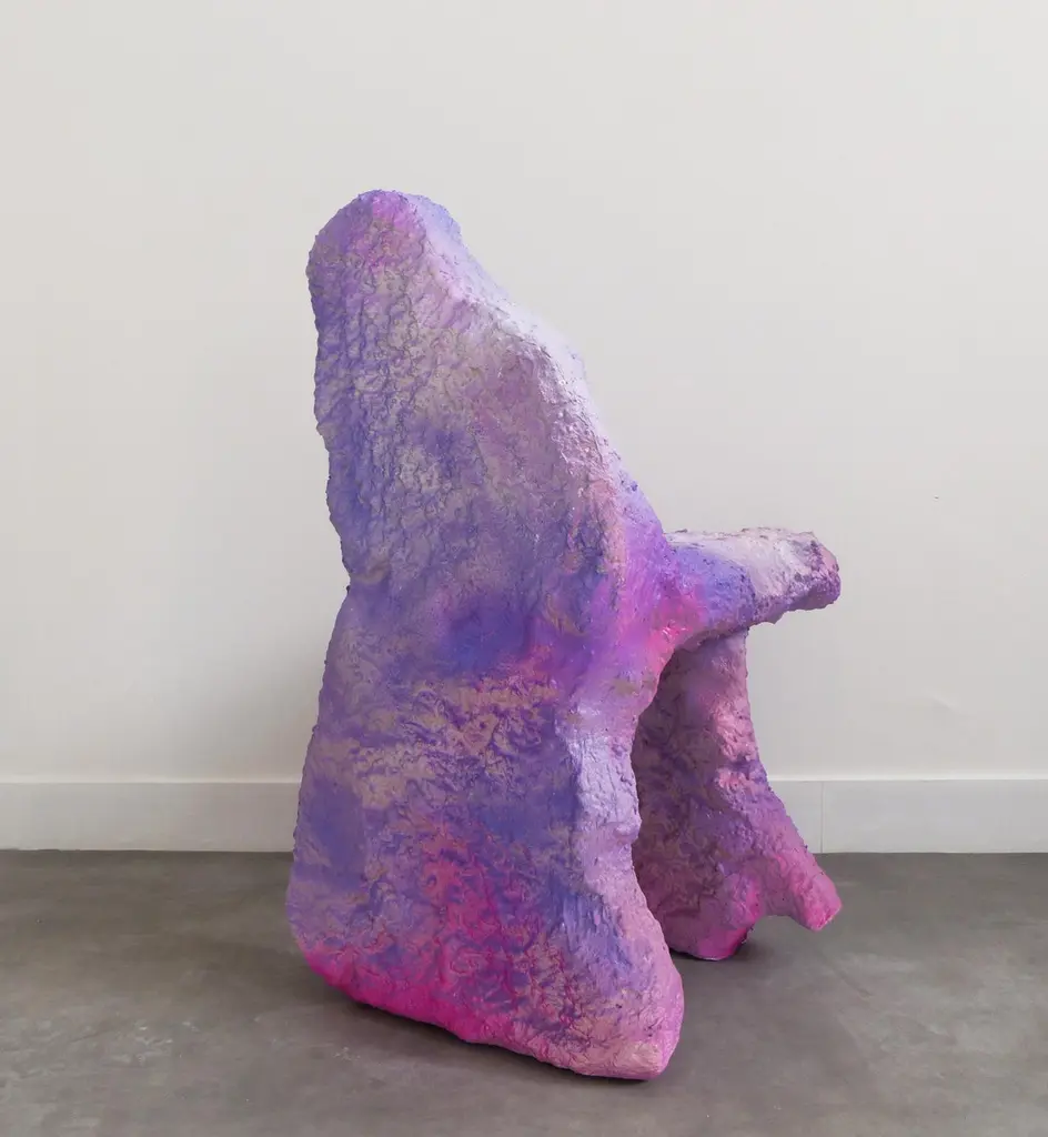 Prélèvement chair by AuchKatzStudio Unique pieceMaterials: Jesmonite, styrofoam, fiber, pigments, varnishDimensions: 75 x 45 x 50 cmAuchKatzStudio (AKS) is a duo of Elsa Belbacha-Lardy and Thomas Thibout, founded in 2017. “This meeting is the fusion between our two universes. These are Elsa's paintings solidified while at the same time Thomas's sculptures liquefy. We create pieces on the border between art and design that matter and paint offer to link. We therefore suggest to the spectator to become an actor immersed in our pictorial spaces. While the color is physically deployed in the space it sculpts, sitting on what can be seen as the sculpture or the painting of a rock, the spectator is caught up in a slowly moving cave-space, at the same time inert. and alive and which offers a meeting between two temporalities, ours and that of the mineral and organic world. ".