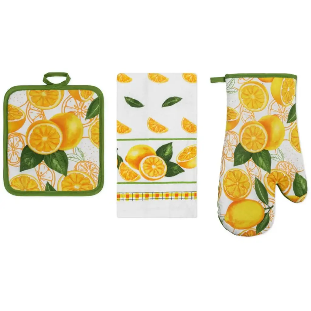 Premius 3 Piece Printed Kitchen Linen Set, 1 Cotton Towel, 1 Pot Holder, 1 Oven Mitt - Kitchen Tools