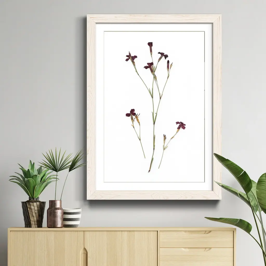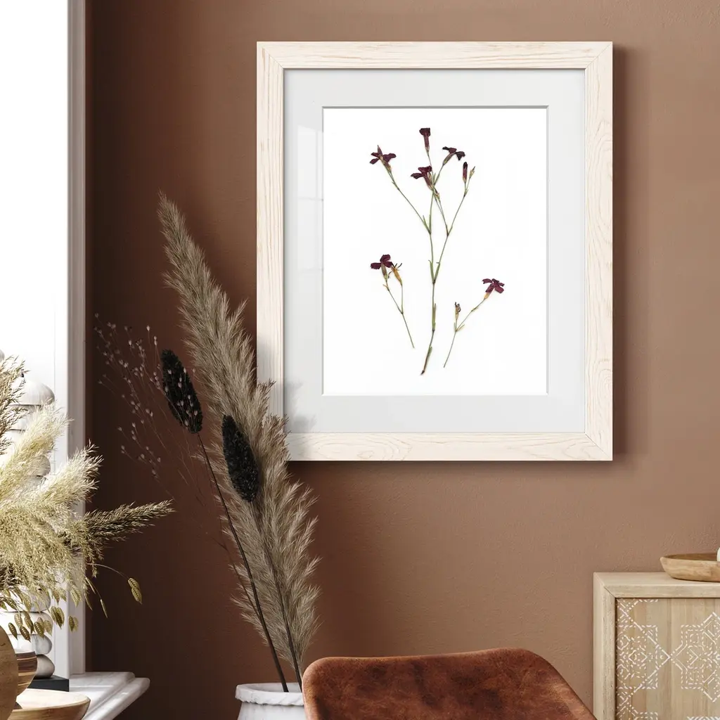 Pressed Botanical II-Premium Framed Print - Ready to Hang Framed in distressed wood and available in an array of sizes and colors Each piece is joined and assembled by hand and comes ready to hang 2 INCH BEVELED MATTE BOARD PLEXIGLASS COVERING READY TO HANG MADE IN THE USA SOLID WOOD FRAME MADE IN USA FADE RESISTANT GICLEE PRINTING on Canvas or Paper