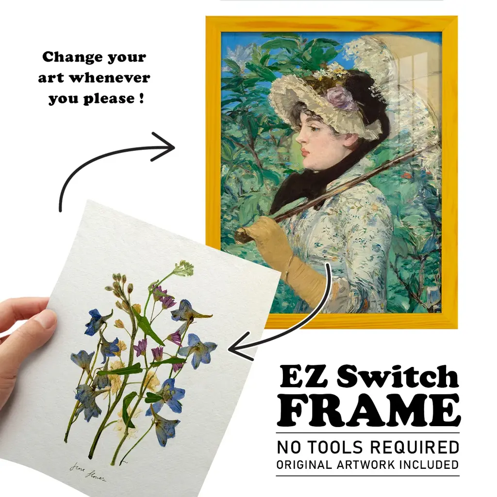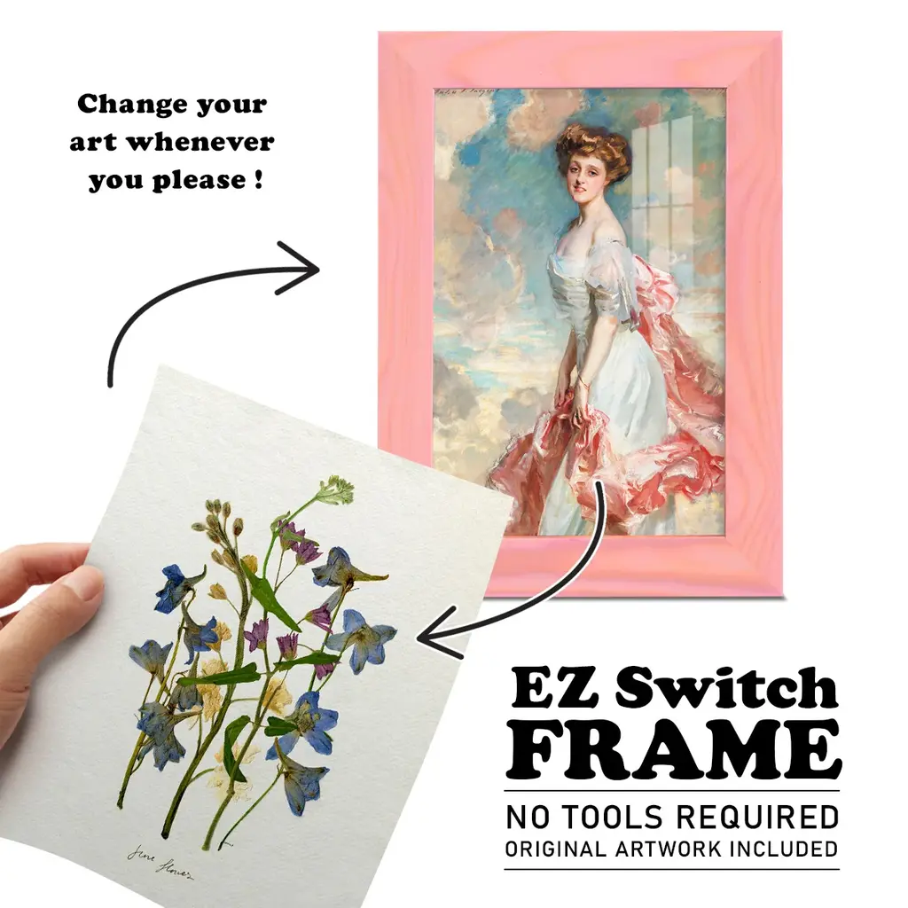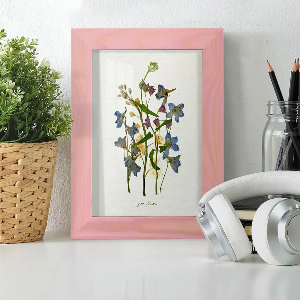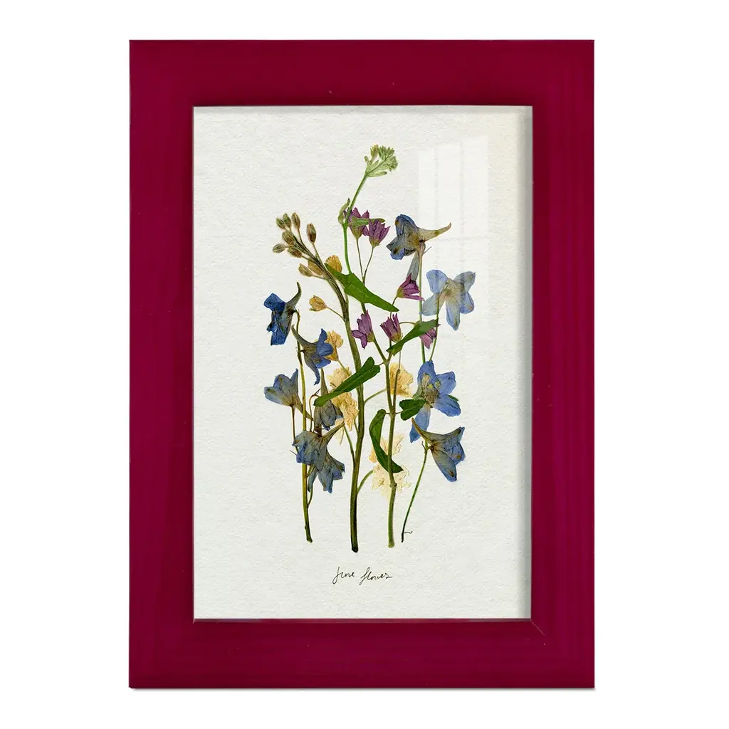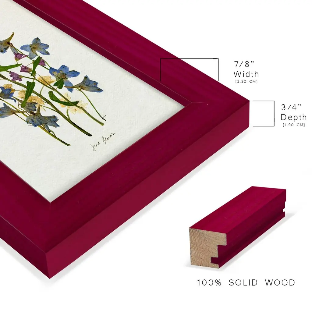 Pressed June Arrangement II -EZ SWITCH Framed Print w/glass-Cherry Red A delightful, framed print. Featuring a solid wood frame with real wood glass. This premium print is giclee quality. In addition, every frame features a removable back and table top stand. This allows you to change your art in the future or to just stand the art on a table for a new look. We are sure you'll enjoy our new series of EZ SWITCH Framed Art. Solid Wood Frame Real Glass Removable / Replaceable Art Built in Tabletop Stand Sizes range from 4x6 up to 12x15 - buy just one or pair them up as sets as you see fit.