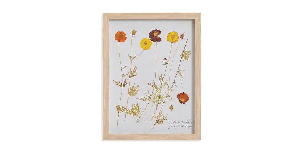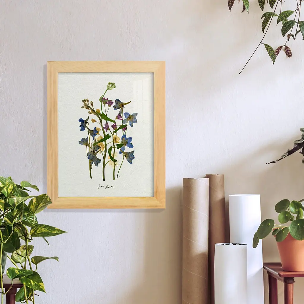 Pressed Purple Flowers is one of nine prints in a collection of colorful botanicals displaying studies of florals and fronds that easily could have come right from a horticultural field guide! This work of art features an antiqued background, natural wood frame, and arrives ready to be hung on your wall. The pieces in this collection work beautifully as individuals or can be dislpayed in pairs, sets, or grids to make a statement - you get to become the artist by mixing and matching to create your favorite combination! All pieces in this collection designed, printed, and assembled in the USA.