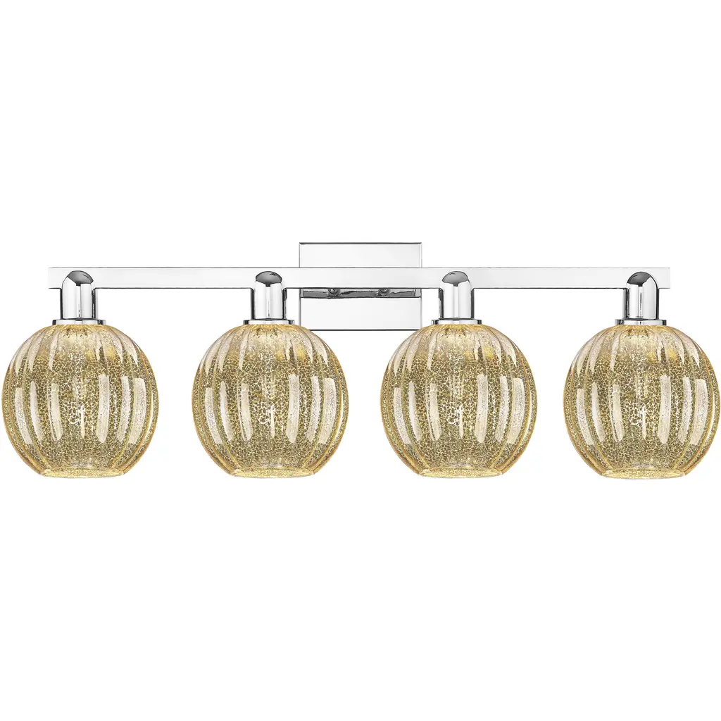 Preston 4 Light 36 Inch Polished Chrome Bath Vanity Light Wall Light In Mercury Glass