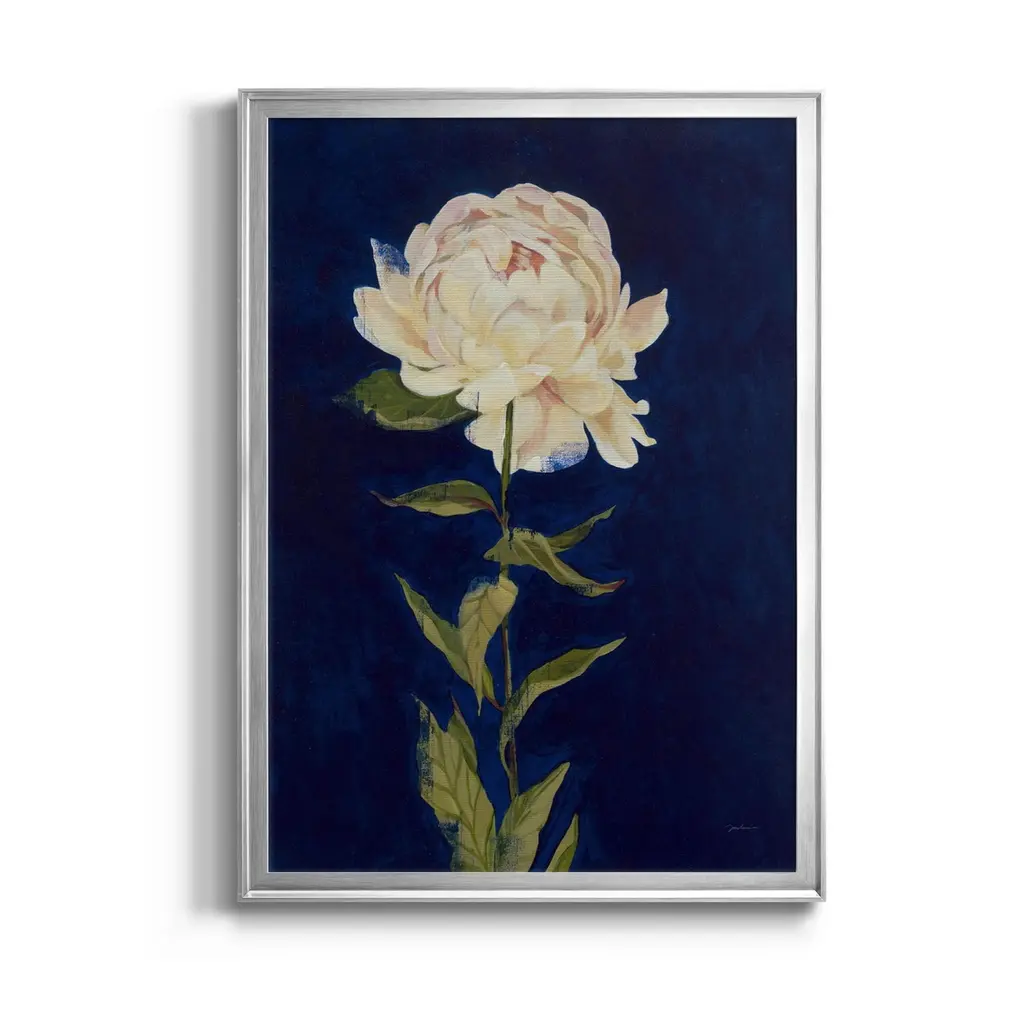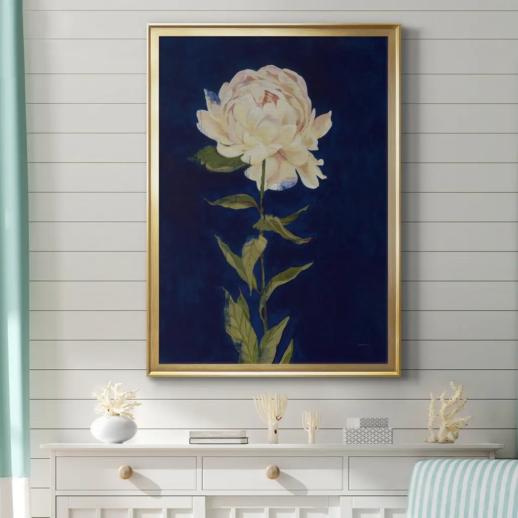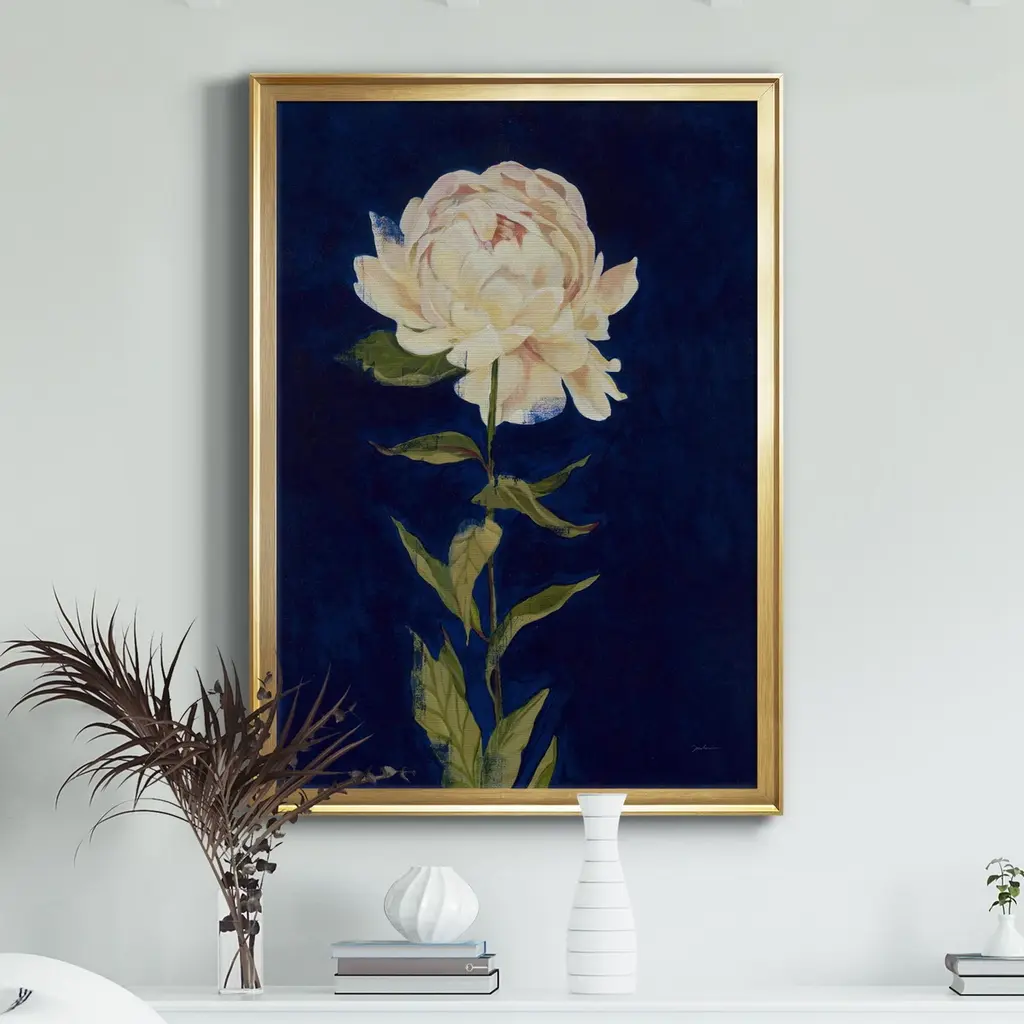 PRETTY AS A PEONY I Premium Framed Canvas - Ready to Hang A Premium Framed Canvas created to last. Framed in distressed wood and available in an array of sizes and colors Featuring a beveled a solid wood stretcher bar, each piece comes ready to hand 4 SIZES AVAILABLE 30.5''X42.5'' - Overall Size 26.5'X36.5'' - Overall Size 22''x30'' - Overall Size 18''x24'' - Overall Size Each piece is made to order. Each piece comes with hanging hardware. Made in the USA Ready to Hang Giclee Paper Print Acrylic Glass Beveled Matt Board