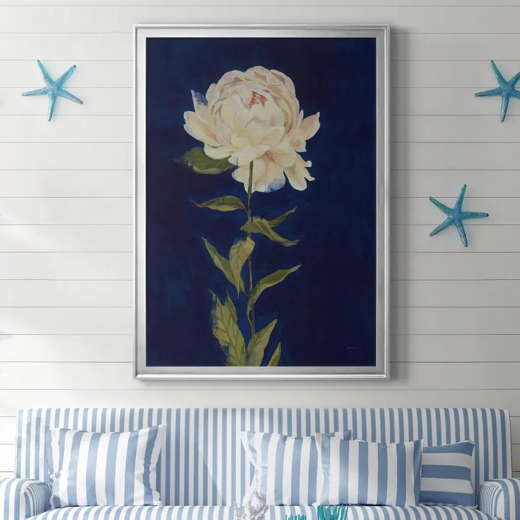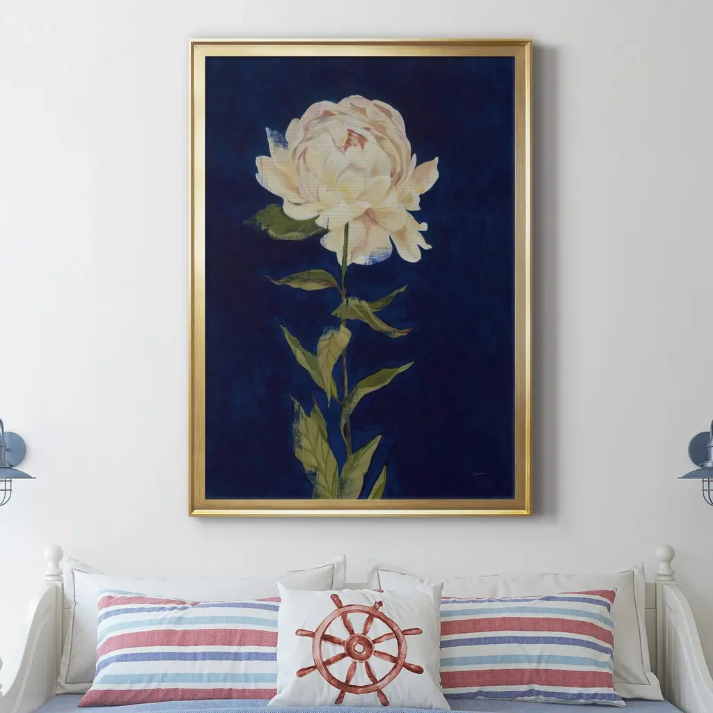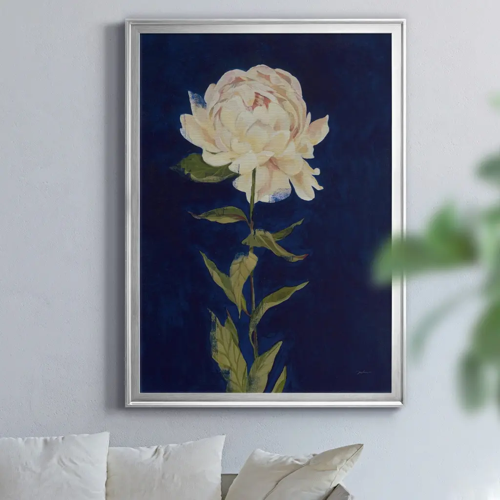 PRETTY AS A PEONY I Premium Framed Canvas - Ready to Hang A Premium Framed Canvas created to last. Framed in distressed wood and available in an array of sizes and colors Featuring a beveled a solid wood stretcher bar, each piece comes ready to hand 4 SIZES AVAILABLE 30.5''X42.5'' - Overall Size 26.5'X36.5'' - Overall Size 22''x30'' - Overall Size 18''x24'' - Overall Size Each piece is made to order. Each piece comes with hanging hardware. Made in the USA Ready to Hang Giclee Paper Print Acrylic Glass Beveled Matt Board