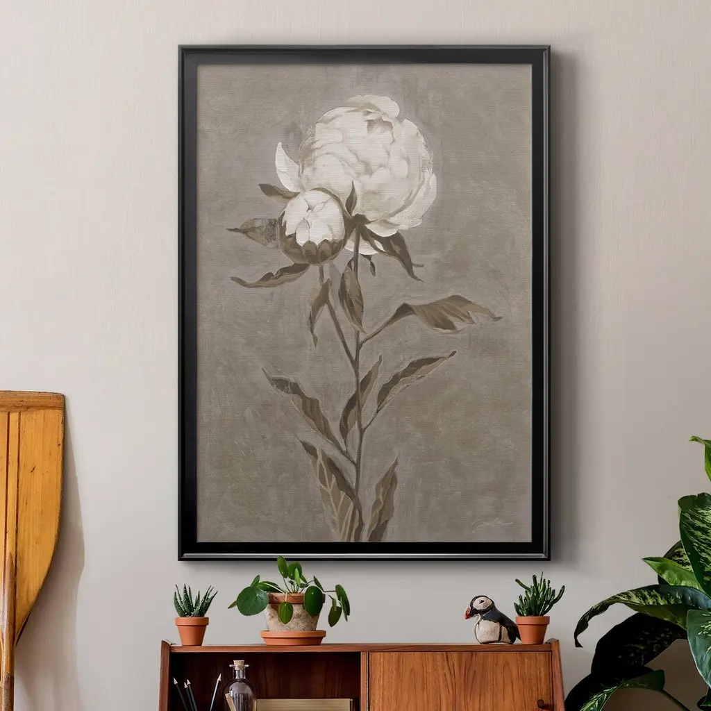 PRETTY AS A PEONY II Premium Framed Print - Ready to Hang A Premium Framed Print created to last. Framed in distressed wood and available in an array of sizes and colors Featuring a beveled a solid wood stretcher bar, each piece comes ready to hand 4 SIZES AVAILABLE 30.5''X42.5'' - Overall Size 26.5'X36.5'' - Overall Size 22.5''x30.5'' - Overall Size 18.5''x24.5'' - Overall Size Each piece is made to order. Each piece comes with hanging hardware. Made in the USA Ready to Hang