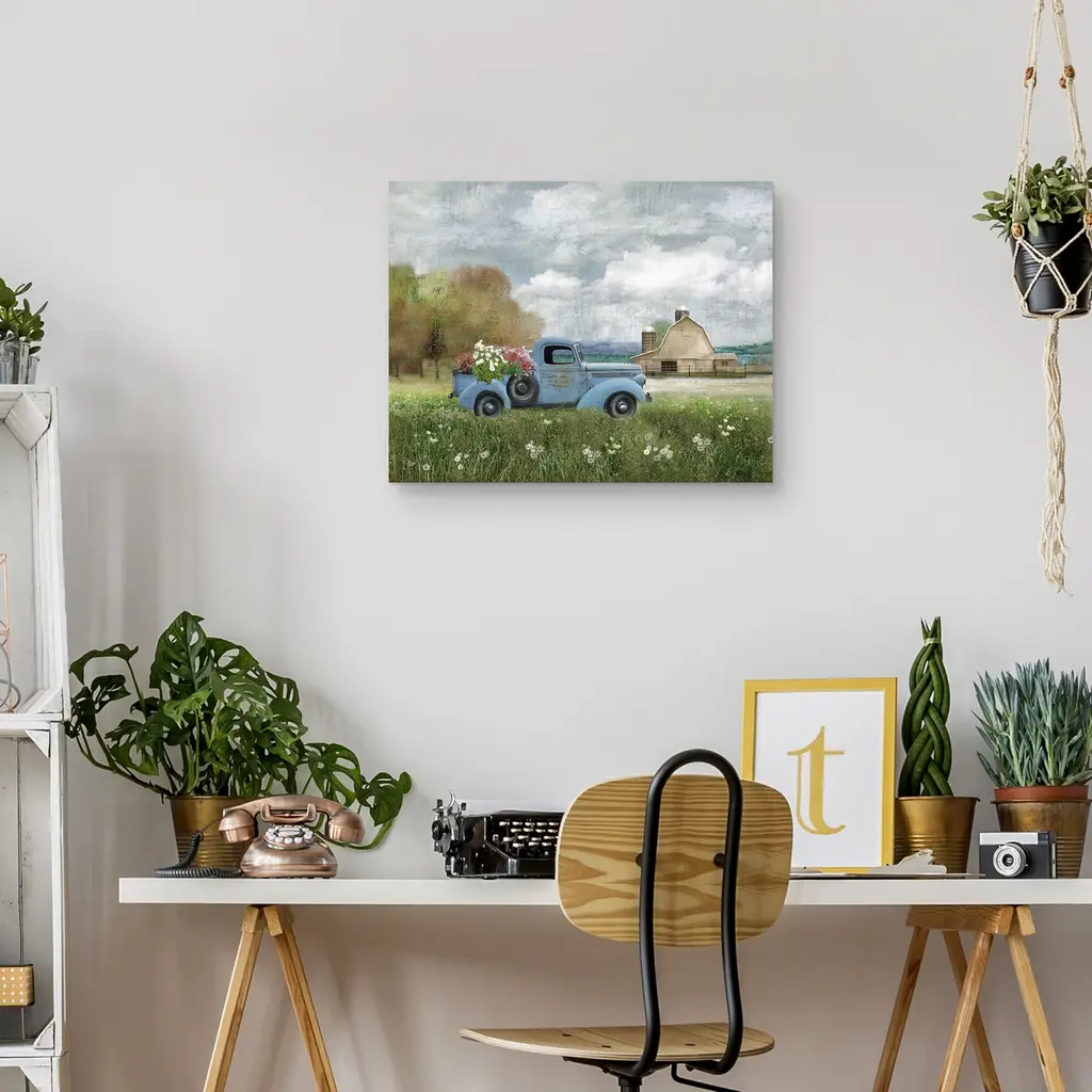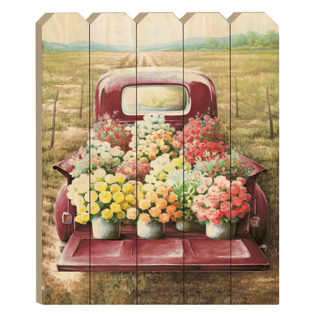 Pretty Red Truck Flowers For Sale Unframed Picket Fence Wall Art - Red