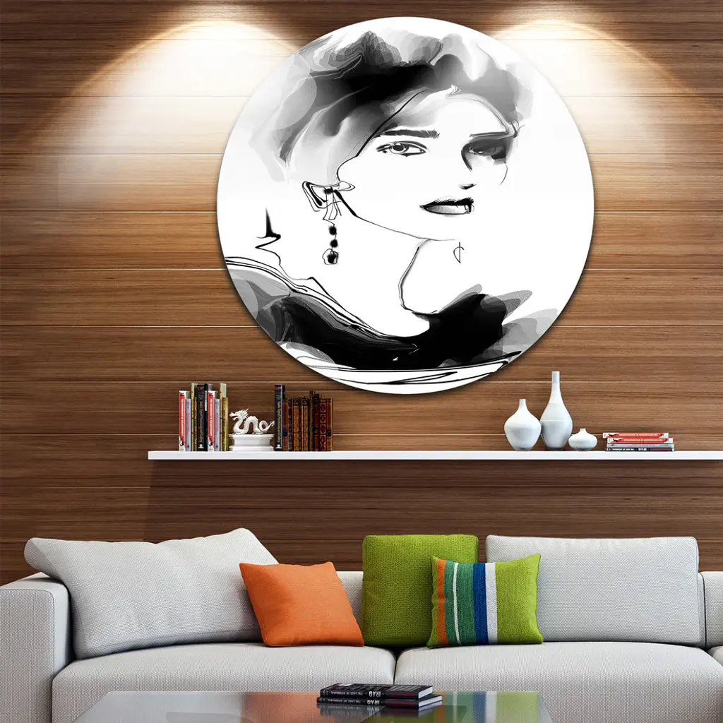 Pretty Woman Black, Portrait Digital Art Disc Metal Artwork, 23"