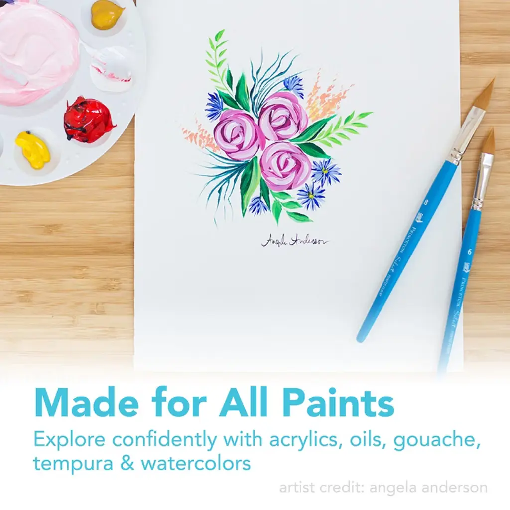 Princeton Select Artiste Round Brush, Synthetic Bristles, Short Handle Mixed Media Paintbrush, Jewel Blue, Size 1, Pack of 6 | Ignite your creativity with Princeton's best-selling Select Artiste brushes, a meticulously crafted collection that brings your paintings to life. Created by Princeton's master artisans, this expansive series offers 29 distinct shapes and 108 individual styles, ensuring you have the perfect tool for every artistic endeavor. Designed with a variety of high-quality synthetic hairs, these short-handled brushes deliver exceptional performance across all painting techniques—from intricate detailing and bold blocking to smooth shading, precise lettering, and effortless washes. Durable, affordable, and reliable, Select Artiste brushes are the ideal choice for both seasoned professionals and passionate amateurs, empowering you to express your artistry with confidence and flair. Sold as a pack of 6.
