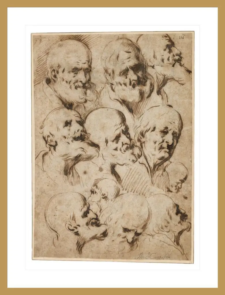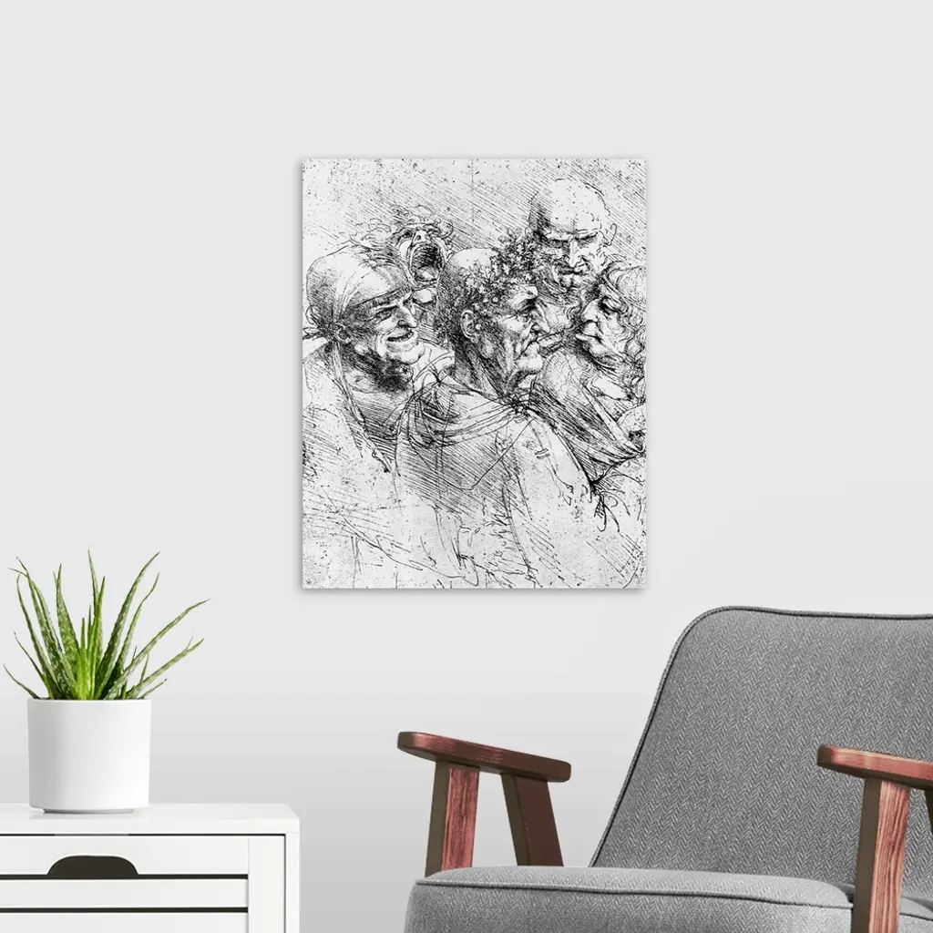 Print After a Drawing of Five Characters in a Comic Scene by Leonardo da Vinci --- Image by .. Bettmann/CORBIS