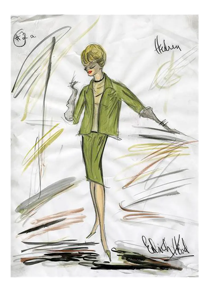 Print Of Original Costume Sketch By Edith Head For Tippi Hedren "The Birds"