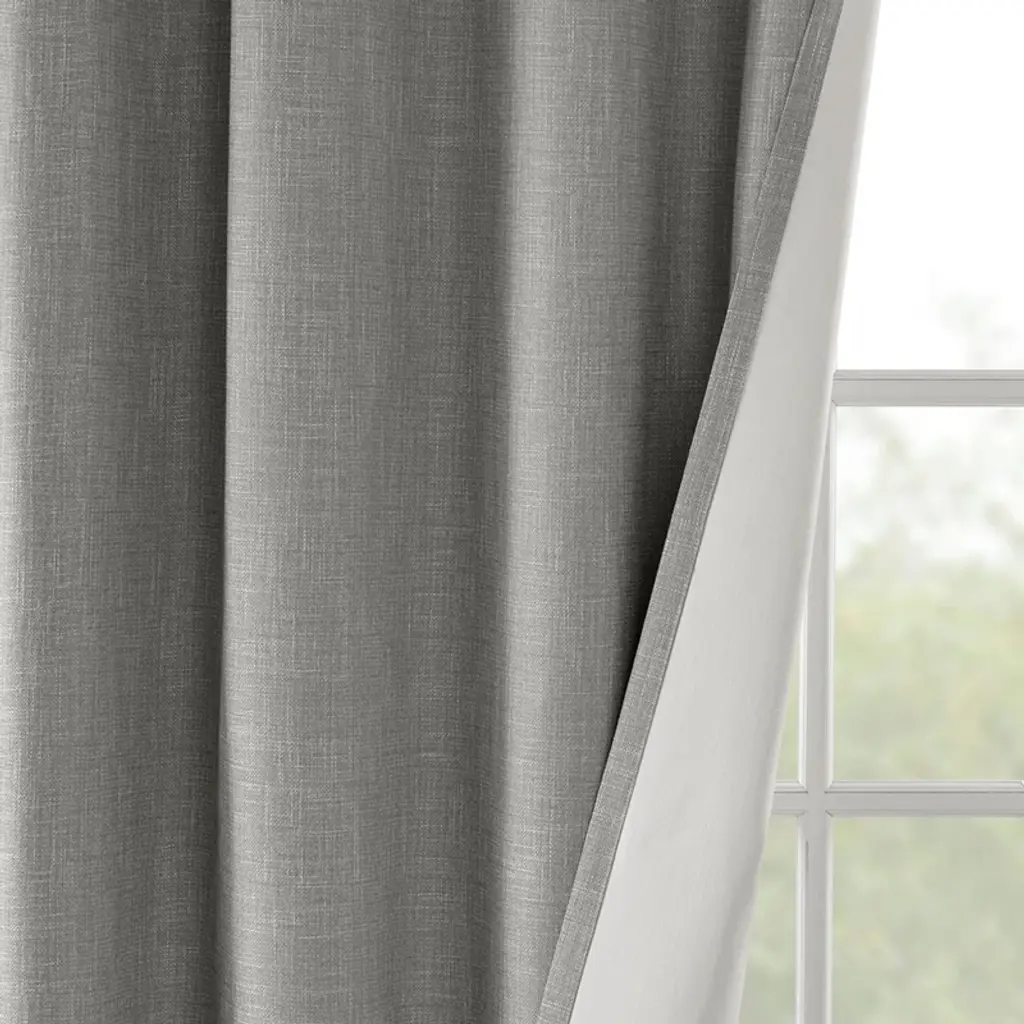 Energy efficiency meets chic casual style, with our SunSmart Maya Printed Heathered Blackout Patio Panel. Featuring a printed heathered design in a cool grey hue, this blackout patio window panel is made from a textured polyester slub base fabric creating beautiful texture and dimension. A one pass foamback finish with additional bonding is added and enhances the panel to buffer most sunlight, while also creating a significant barrier to reduce outside noise. The silver grommet top makes it easy to hang, open, and close the panel throughout the day; fits up to a 1.25” diameter rod. Perfect for any space - this blackout patio panel provides considerable energy savings and a high-level of privacy by bringing a heavily shaded lighting level to any room. Product Details 100x84" 1 Window Panel:100"W x 84"L Material 100% Polyester