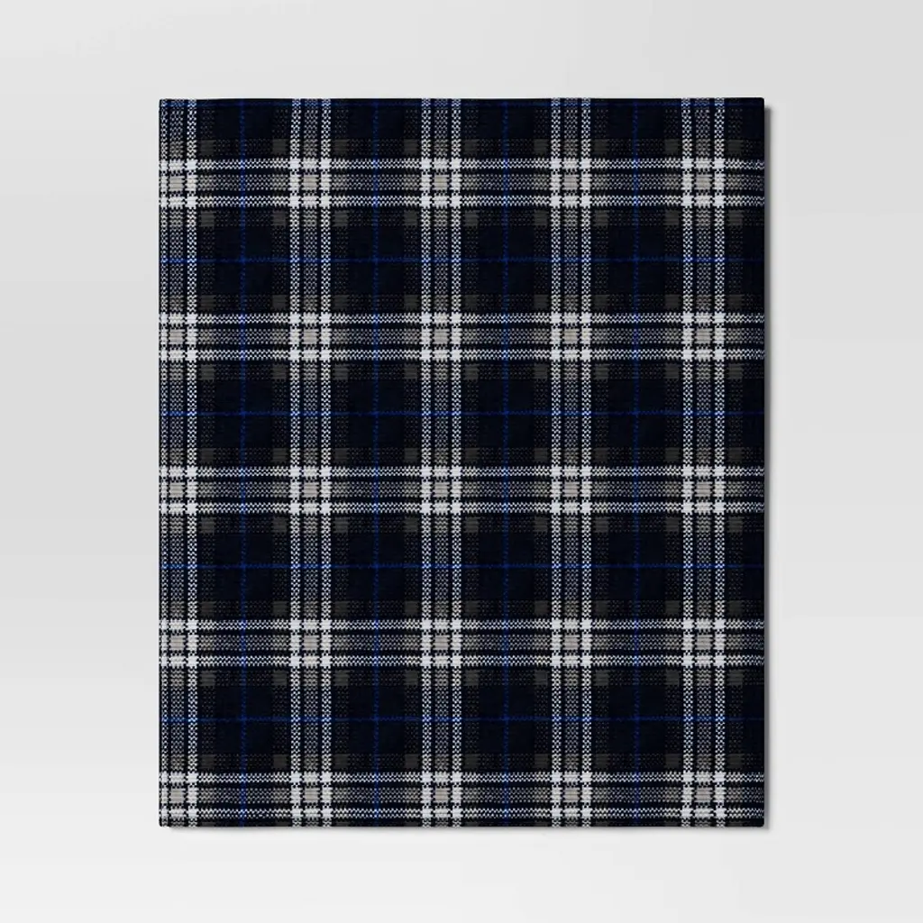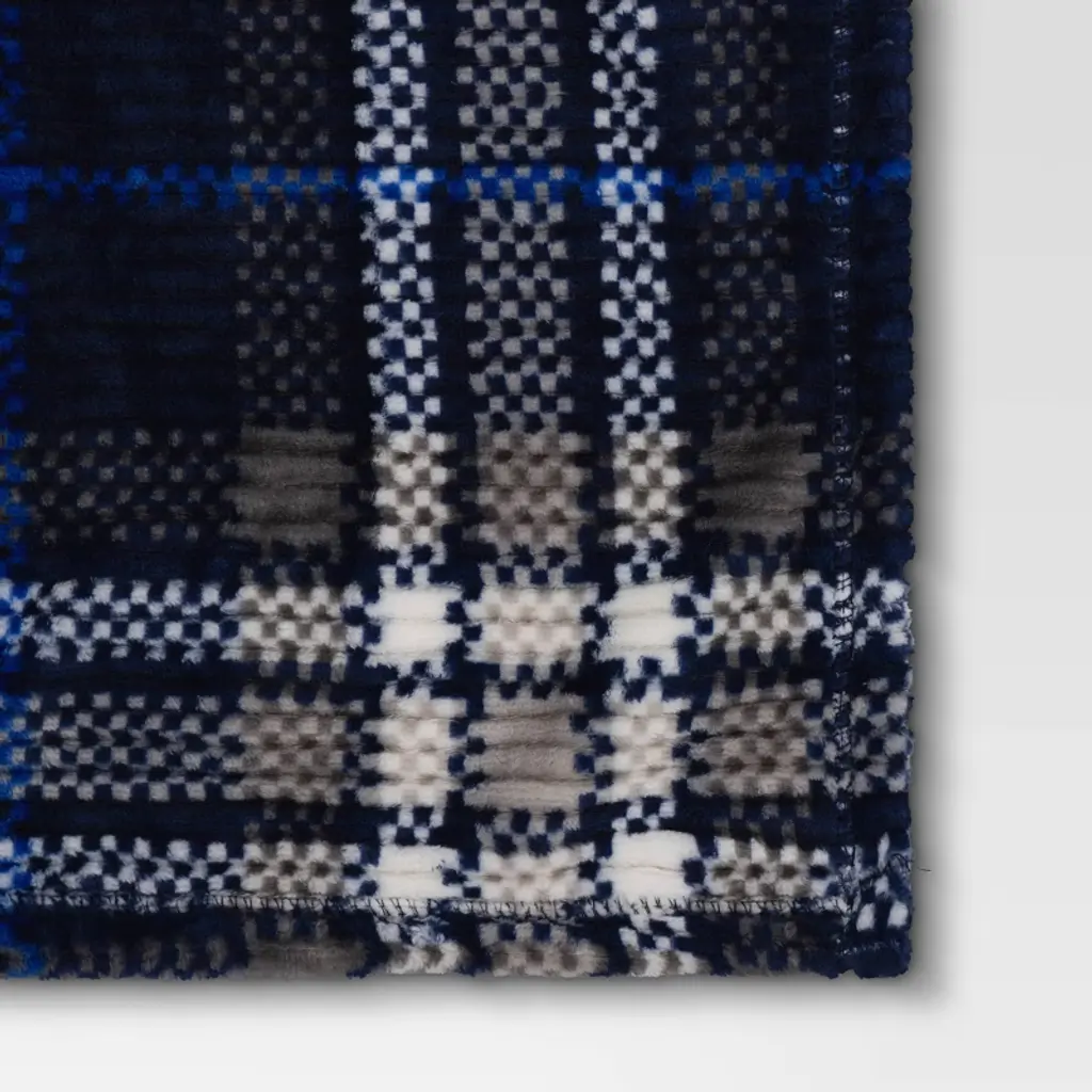 Printed Plaid Ribbed Plush Throw Blanket Navy/gray/ivory - Room Essentials™