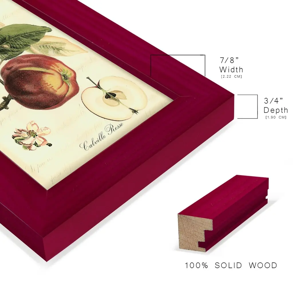 Printed Tuscan Fruits I -EZ SWITCH Framed Print w/glass-Cherry Red A delightful, framed print. Featuring a solid wood frame with real wood glass. This premium print is giclee quality. In addition, every frame features a removable back and table top stand. This allows you to change your art in the future or to just stand the art on a table for a new look. We are sure you'll enjoy our new series of EZ SWITCH Framed Art. Solid Wood Frame Real Glass Removable / Replaceable Art Built in Tabletop Stand Sizes range from 4x6 up to 12x15 - buy just one or pair them up as sets as you see fit.