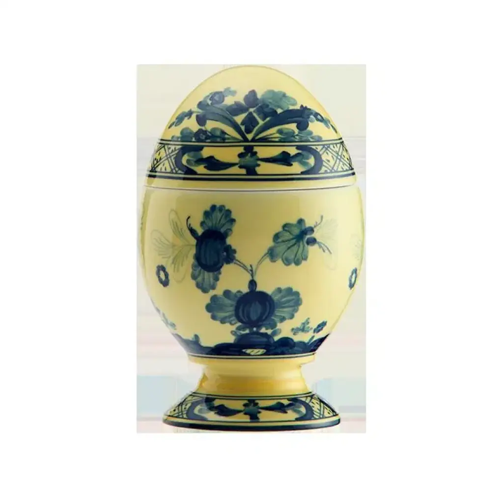 Brilliantly colored spring flowers are painted with uncharacteristically bold brushstrokes in this 1920s-era design. Hand painted in Hungary. Now the biggest porcelain manufactory in Europe, Herend was founded in 1826 to produce earthenware in the small Hungarian village for which it was named. At the time, Hungary was flooded with low-cost pottery, but in 1839, Mor Fischer became the Manufactory’s new owner and he decided to focus on producing dinnerware replacement pieces for Europe’s royal families to complement their valuable porcelain patterns from Germany and the Far East. As his client base grew, Fischer commissioned his artists to begin designing dinnerware patterns of their own. Queen Victoria’s 1851 purchase of a large set for Windsor Castle was a milestone, setting the stage for aristocrats throughout Europe to clamor for Herend in their estates. In the 1850s, Herend added meticulously-crafted figurines to its creations. Herend’s trademark fishnet pattern, which is widely recognized and prized as Herend’s signature design, started in 1858 when an artist who was intrigued with a Chinese plate’s fish scale design painted it onto a rooster figurine to imitate feathers.