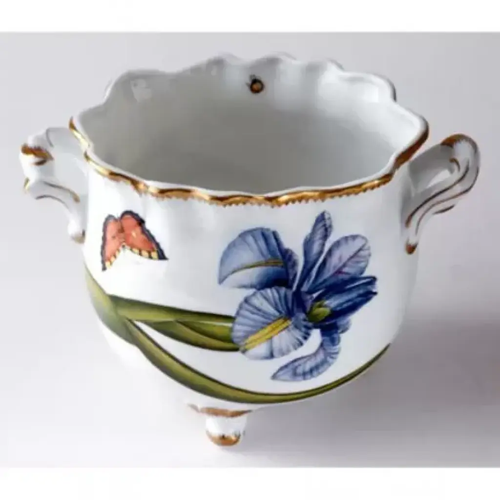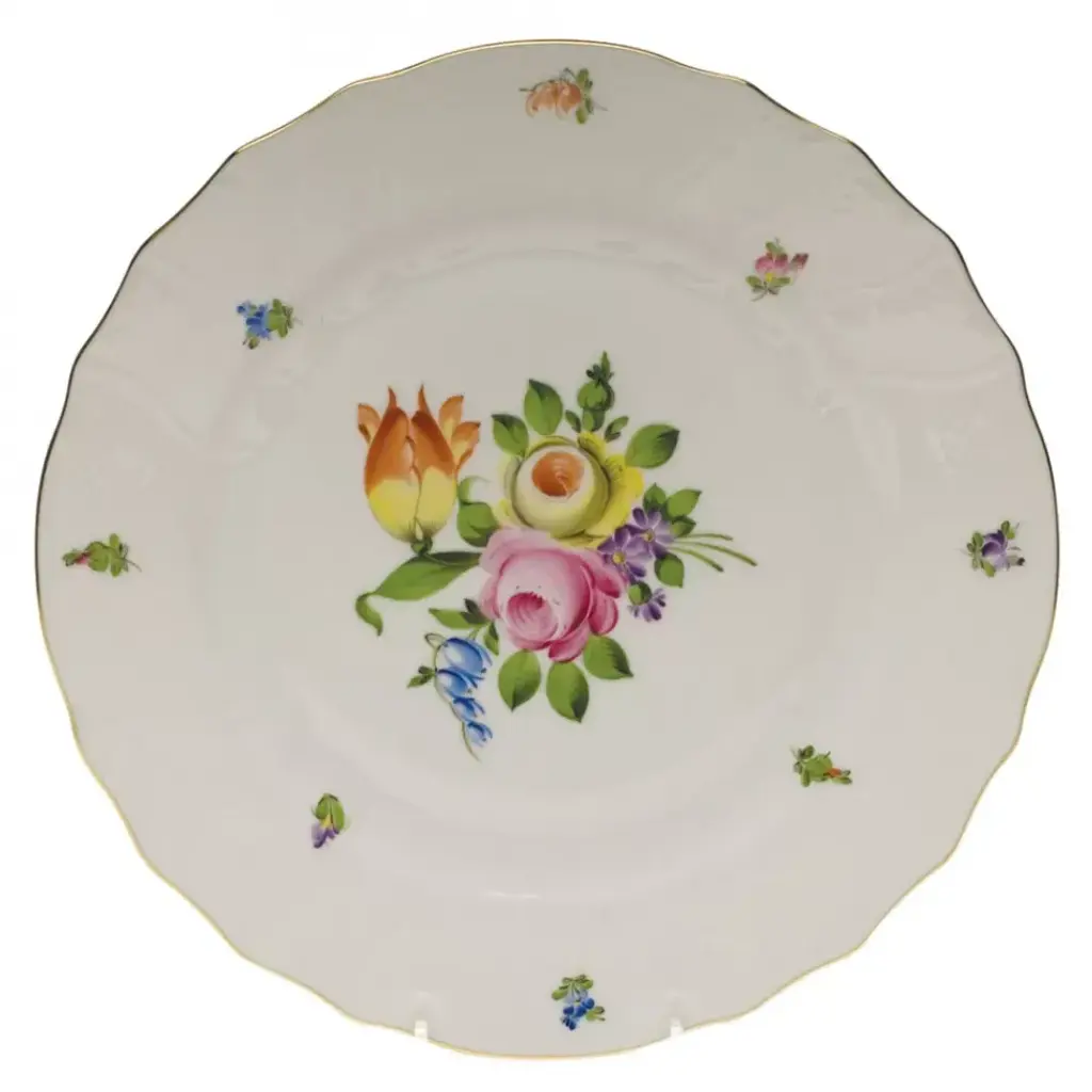 Brilliantly colored spring flowers are painted with uncharacteristically bold brushstrokes in this 1920s-era design. Hand painted in Hungary. Now the biggest porcelain manufactory in Europe, Herend was founded in 1826 to produce earthenware in the small Hungarian village for which it was named. At the time, Hungary was flooded with low-cost pottery, but in 1839, Mor Fischer became the Manufactory’s new owner and he decided to focus on producing dinnerware replacement pieces for Europe’s royal families to complement their valuable porcelain patterns from Germany and the Far East. As his client base grew, Fischer commissioned his artists to begin designing dinnerware patterns of their own. Queen Victoria’s 1851 purchase of a large set for Windsor Castle was a milestone, setting the stage for aristocrats throughout Europe to clamor for Herend in their estates. In the 1850s, Herend added meticulously-crafted figurines to its creations. Herend’s trademark fishnet pattern, which is widely recognized and prized as Herend’s signature design, started in 1858 when an artist who was intrigued with a Chinese plate’s fish scale design painted it onto a rooster figurine to imitate feathers.
