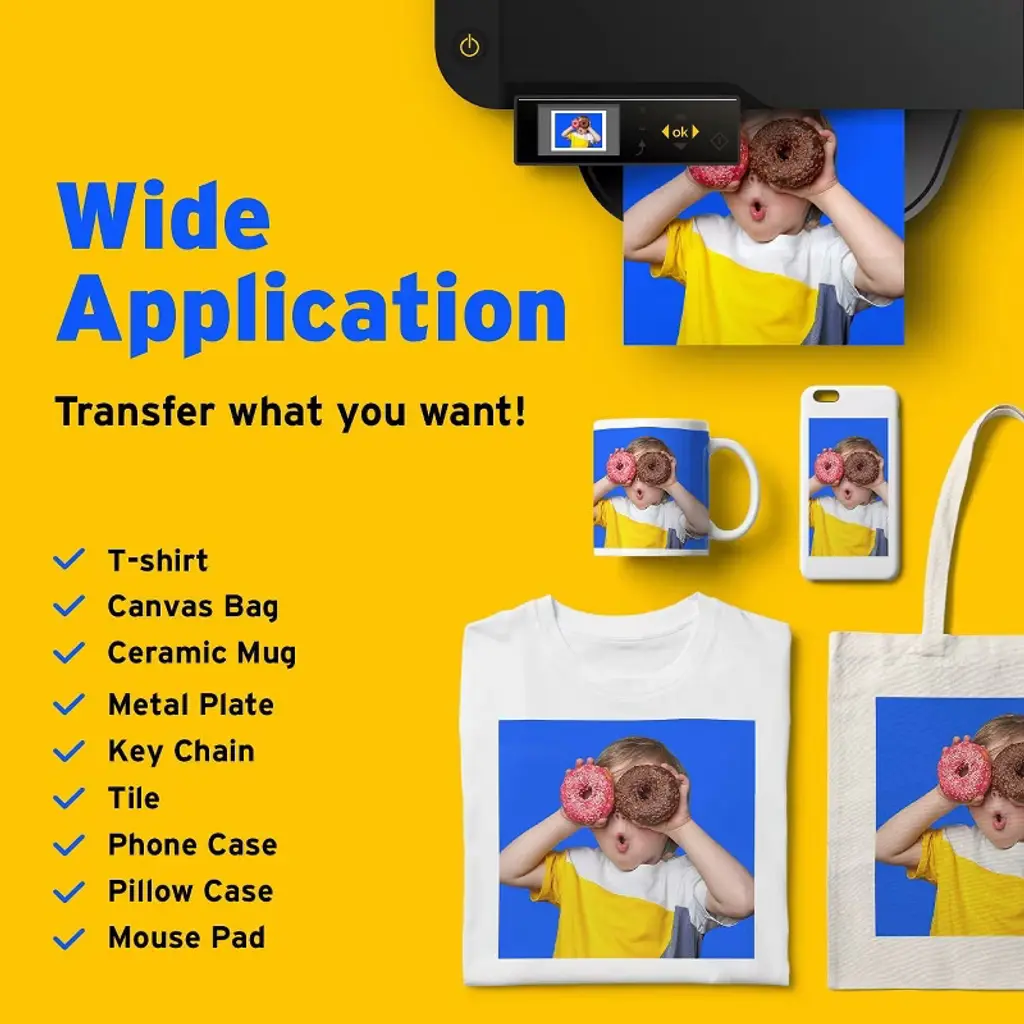 Printers Jack Sublimation Paper delivers professional-quality transfers with over 98% ultra-high transfer rates. Each pack includes 100 sheets, 125 GSM, sized 8.5x11 in, designed to produce vivid, durable prints that resist fading, cracking, and dullness. The fast-drying formula locks in color instantly, saving time and reducing smudges. Compatible with Epson, Ricoh, and Sawgrass inkjet printers using sublimation ink, this paper works on polyester fabrics and coated items such as mugs, phone cases, puzzles, ceramic plates, and more. Ideal for crafters, gift makers, and businesses, it ensures consistent, professional results every time.