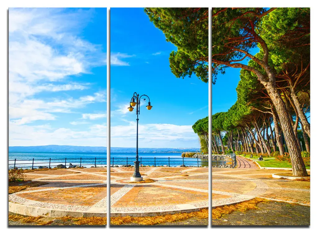 "Promenade And Pine Trees In Italy" Metal Wall Art, 3 Panels, 36"x28"