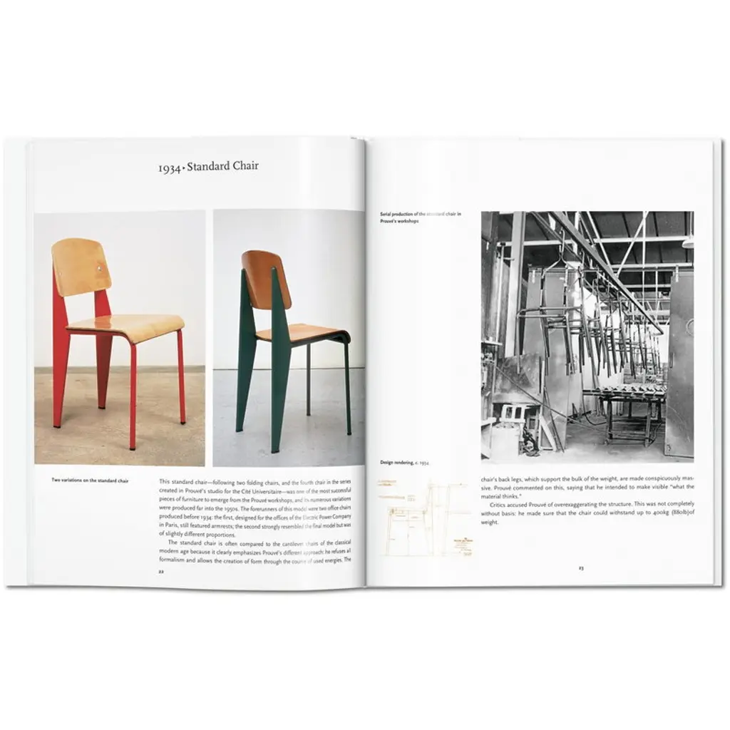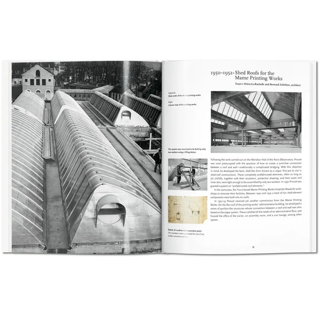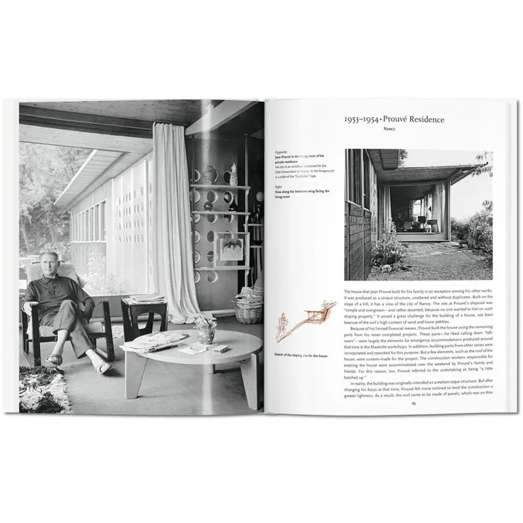Published by Taschen, Prouvé provides a compact insight into the career of Jean Prouvé, one of the most influential architects of the 20th century. French-born Prouvé (1901–1984) became known for his prefabricated buildings, understated style and utilization of new techniques. The book was written by a Nils Peters, a German architect and art historian, and it is part of Taschen’s Basic Architecture series that presents life and work of internationally renowned architects with approximately 120 photographs, sketches and drafts. Editor of the collection is the German art historian Peter Gössel. French architect and designer Jean Prouvé innovated crisp, economical construction designs, marrying inexpensive materials and mass production with esthetic elegance and technical brilliance. His simple, graceful style is an inimitable expression of midcentury innovation, expansion, and growth, and secured his place as one of the century’s most influential designers.