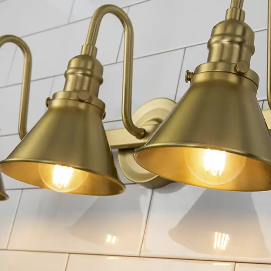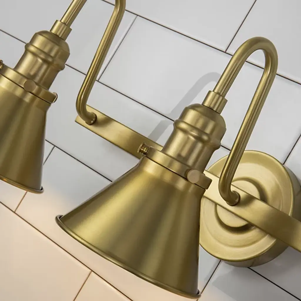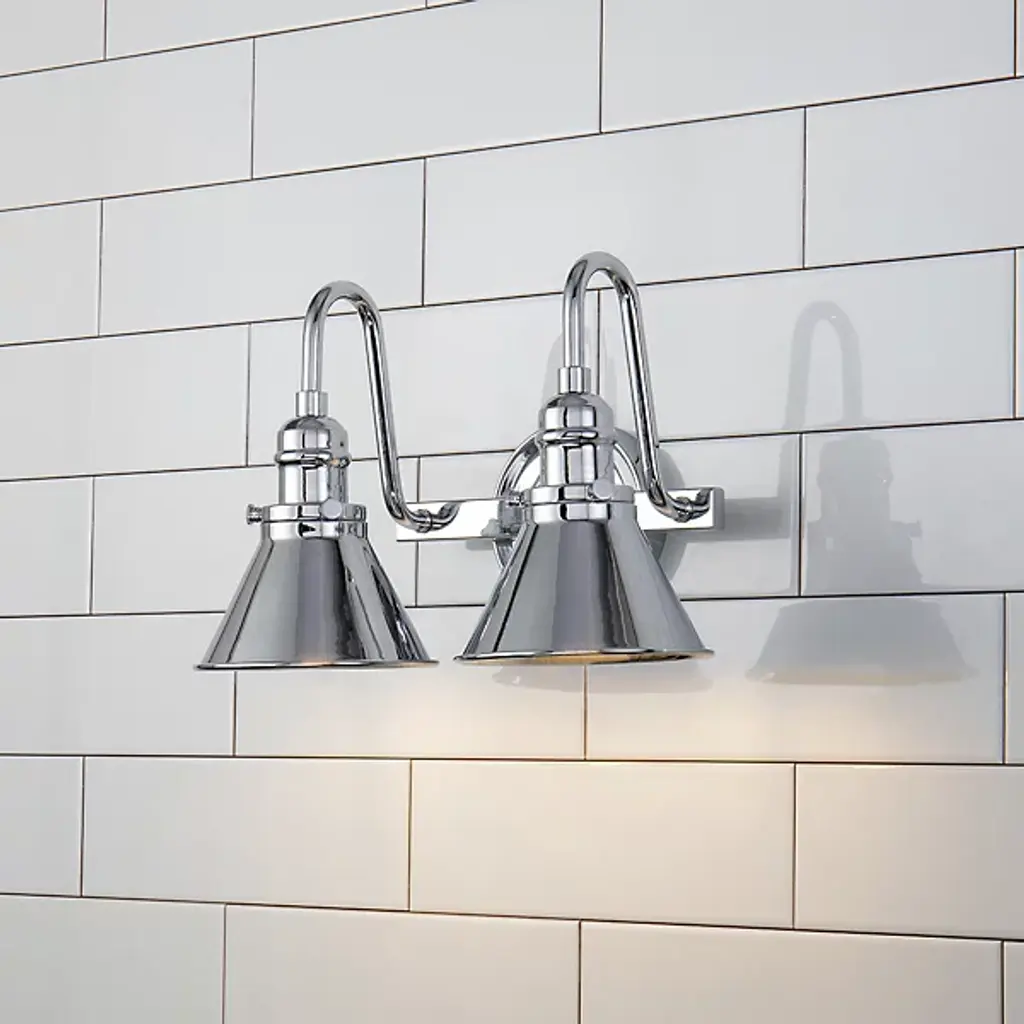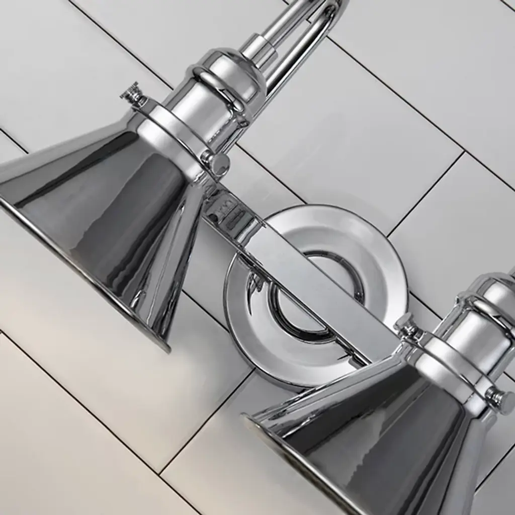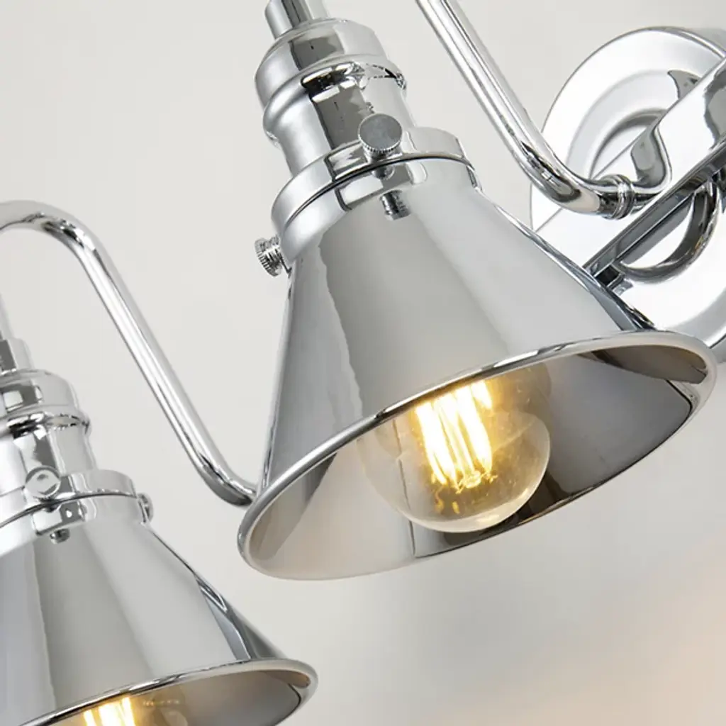 Envelope your mirrors with the uniform, flattering light of the Provence Vanity Light from Lucas McKearn. The piece presents farmhouse motifs with a retro-chic flavor. It pairs well with a round or angular mirror as it rests on top using a sharp crossbar. Tubular arms excite as they arch dramatically. Sporting industrial accents, the cone shades below impress with a pristine metal surface. The grouped shades let out an even downlight.