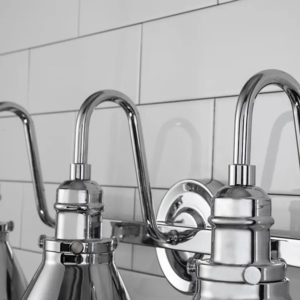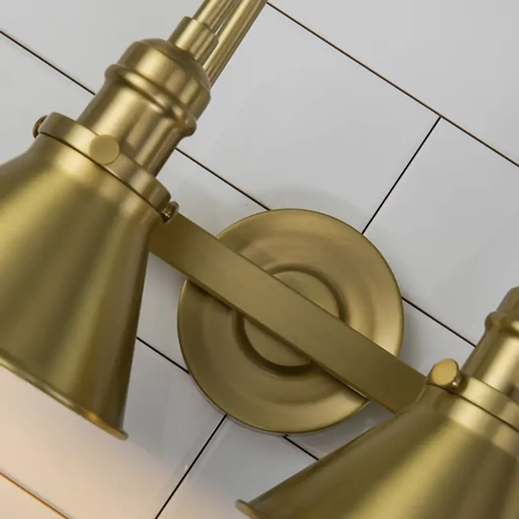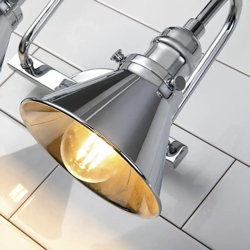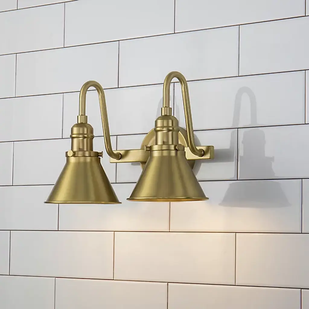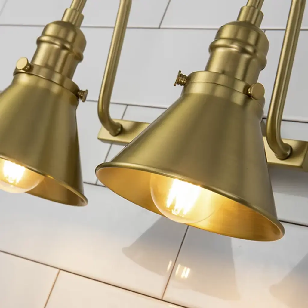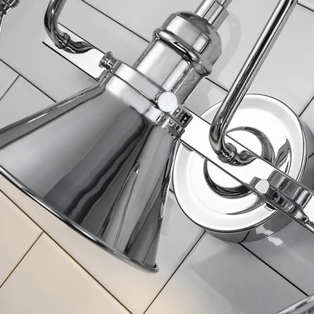 Envelope your mirrors with the uniform, flattering light of the Provence Vanity Light from Lucas McKearn. The piece presents farmhouse motifs with a retro-chic flavor. It pairs well with a round or angular mirror as it rests on top using a sharp crossbar. Tubular arms excite as they arch dramatically. Sporting industrial accents, the cone shades below impress with a pristine metal surface. The grouped shades let out an even downlight.