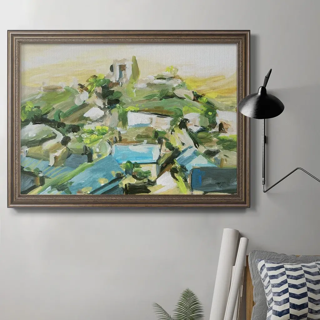 Provincial Villa portrays an elegant, serene country villa, set amidst a lush, tranquil landscape. The artwork captures the timeless charm of rural architecture, with soft, muted colors and detailed textures that evoke a sense of peaceful luxury and rustic sophistication.