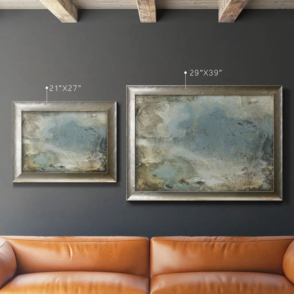 Proximity II Premium Framed Canvas- Ready to Hang A Premium Framed Canvas created to last. Framed in distressed wood and available in an array of sizes and colors Featuring a beveled a solid wood stretcher bar, each piece comes ready to hand 3 SIZES AVAILABLE 16''X20'' - Overall Size 18'X27'' - Overall Size 24''x36'' - Overall Size Each piece is made to order. Each piece comes with hanging hardware. Made in the USA Ready to Hang Giclee Paper Print Acrylic Glass Beveled Matt Board