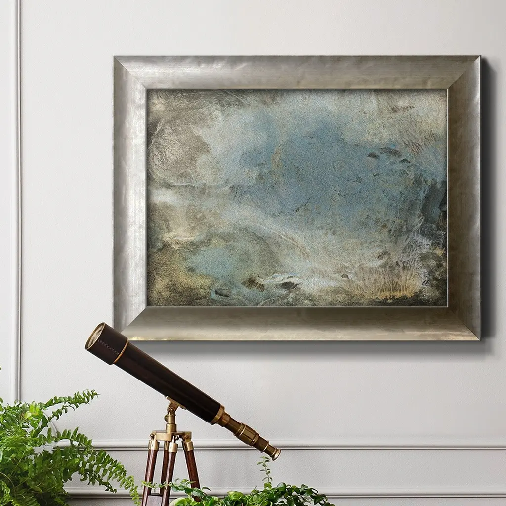 Proximity II Premium Framed Canvas- Ready to Hang A Premium Framed Canvas created to last. Framed in distressed wood and available in an array of sizes and colors Featuring a beveled a solid wood stretcher bar, each piece comes ready to hand 3 SIZES AVAILABLE 16''X20'' - Overall Size 18'X27'' - Overall Size 24''x36'' - Overall Size Each piece is made to order. Each piece comes with hanging hardware. Made in the USA Ready to Hang Giclee Paper Print Acrylic Glass Beveled Matt Board
