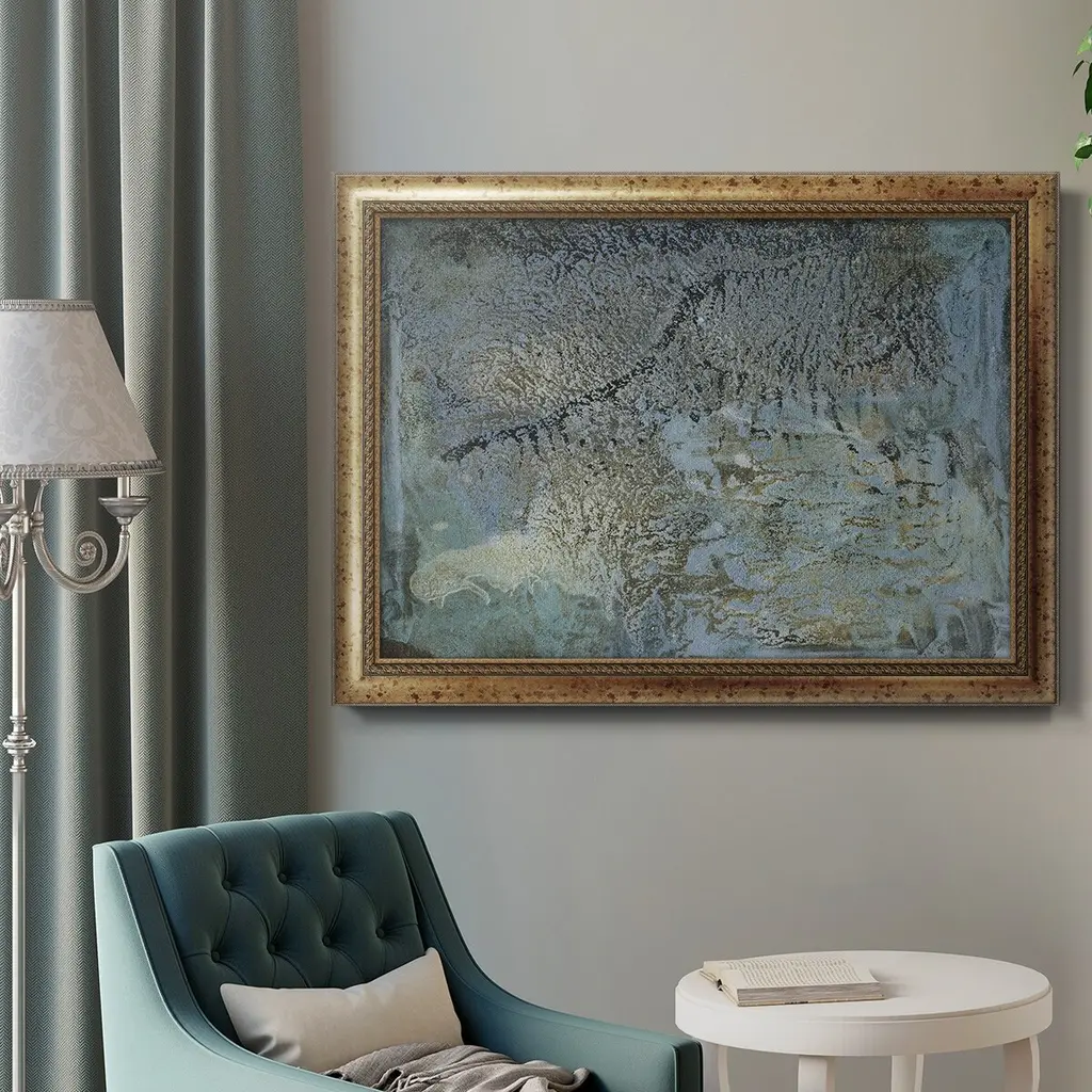 Proximity III Premium Framed Canvas- Ready to Hang A Premium Framed Canvas created to last. Framed in distressed wood and available in an array of sizes and colors Featuring a beveled a solid wood stretcher bar, each piece comes ready to hand 3 SIZES AVAILABLE 16''X20'' - Overall Size 18'X27'' - Overall Size 24''x36'' - Overall Size Each piece is made to order. Each piece comes with hanging hardware. Made in the USA Ready to Hang Giclee Paper Print Acrylic Glass Beveled Matt Board