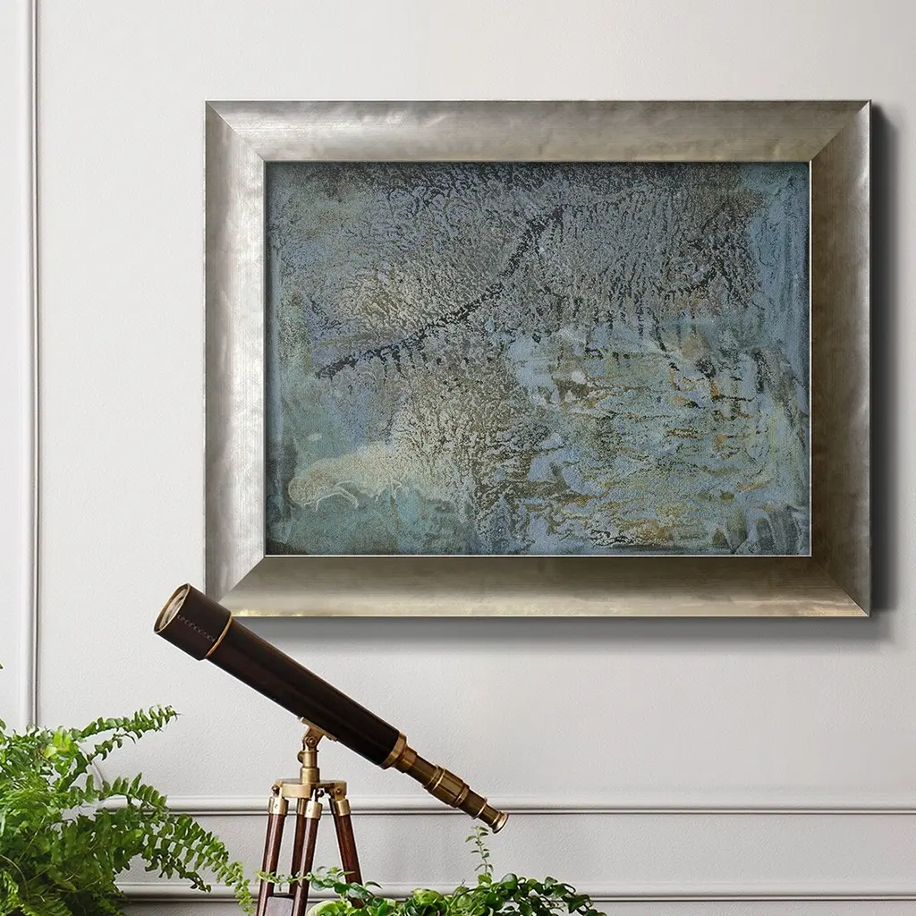 Proximity III Premium Framed Canvas- Ready to Hang A Premium Framed Canvas created to last. Framed in distressed wood and available in an array of sizes and colors Featuring a beveled a solid wood stretcher bar, each piece comes ready to hand 3 SIZES AVAILABLE 16''X20'' - Overall Size 18'X27'' - Overall Size 24''x36'' - Overall Size Each piece is made to order. Each piece comes with hanging hardware. Made in the USA Ready to Hang Giclee Paper Print Acrylic Glass Beveled Matt Board
