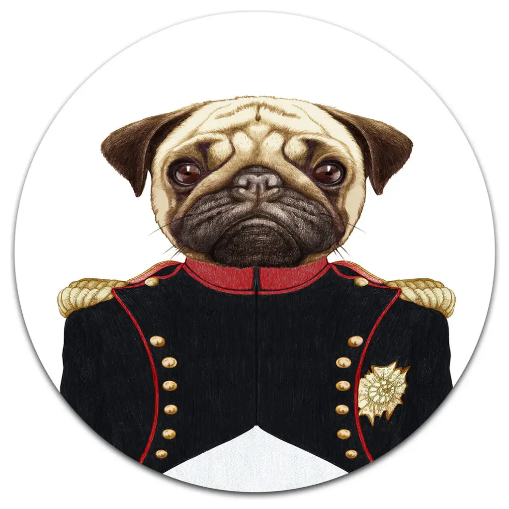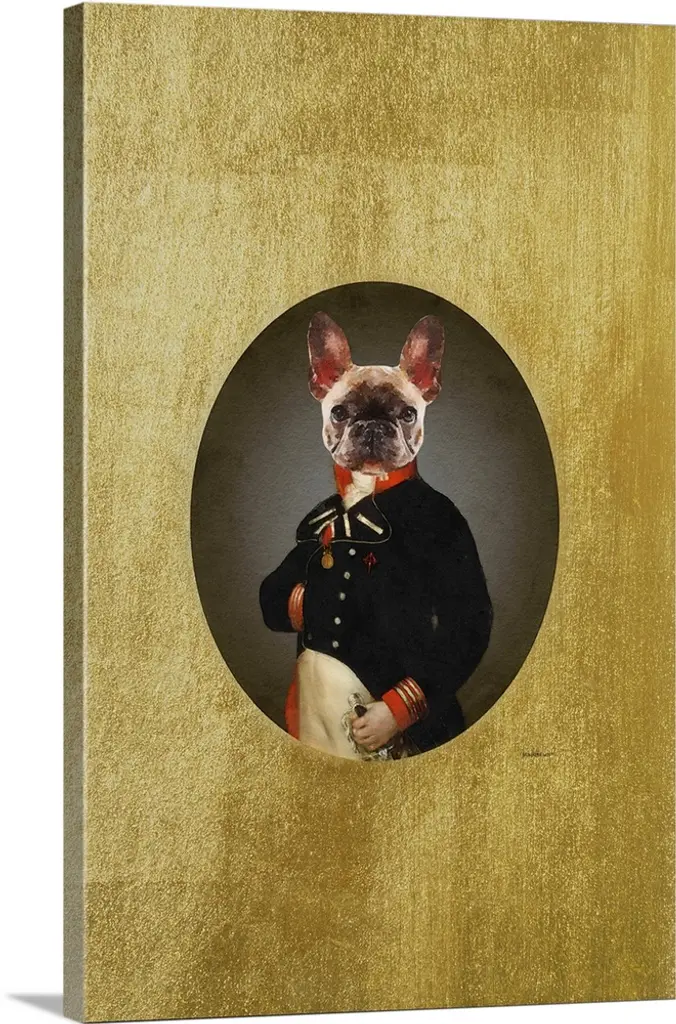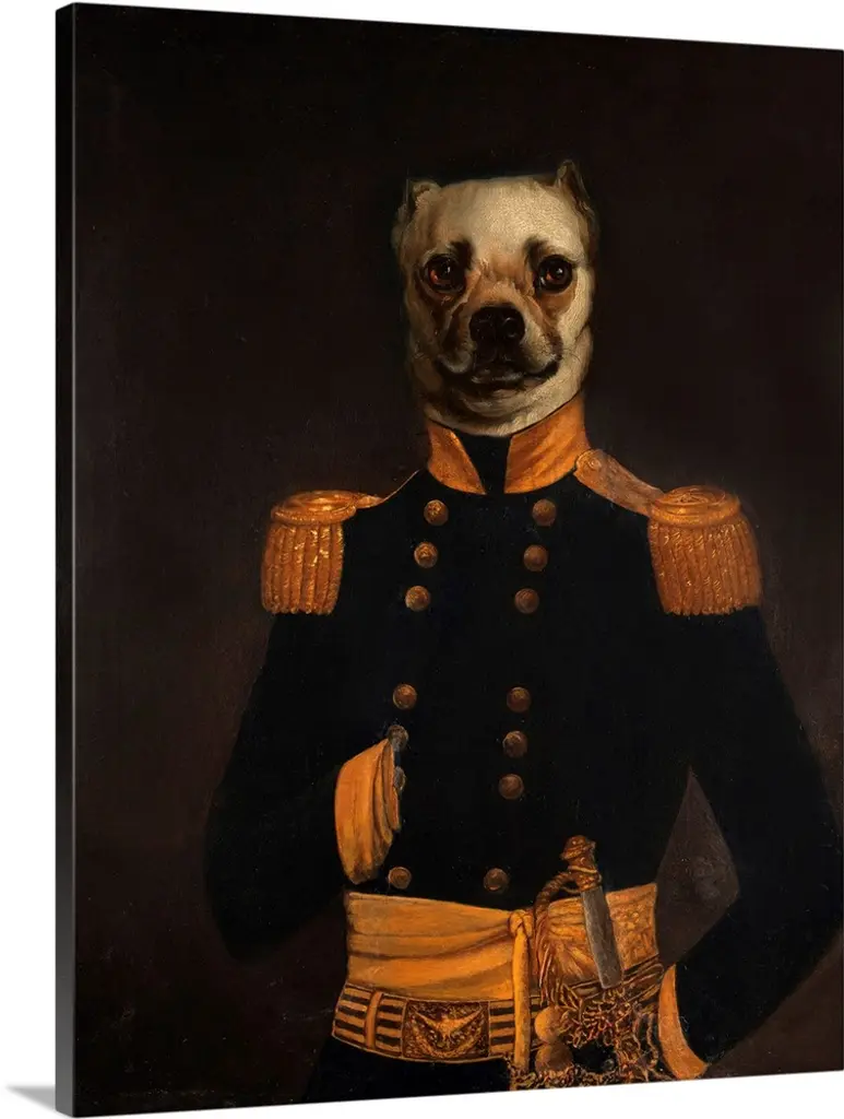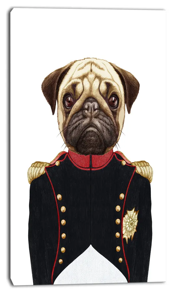 Pug Dog In Military Uniform, Animal Canvas Art Print, 16"x32"