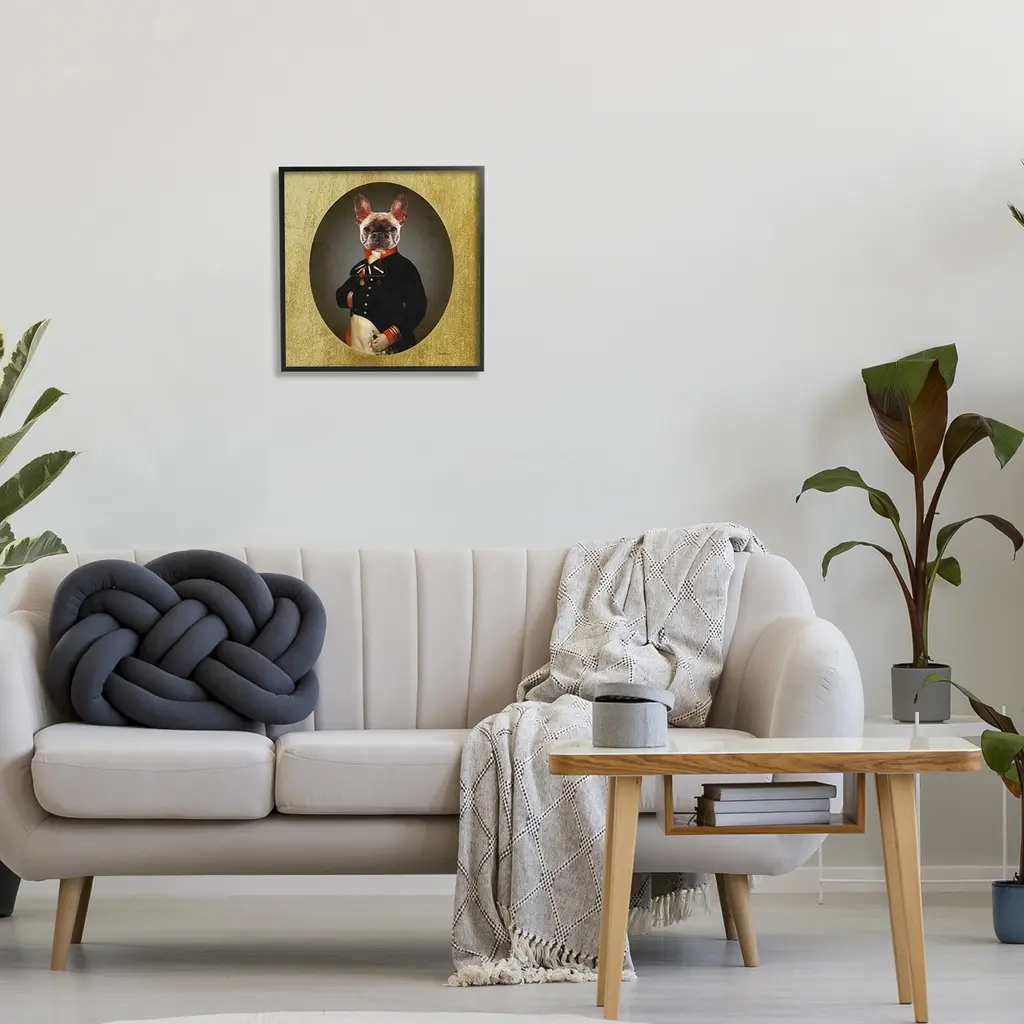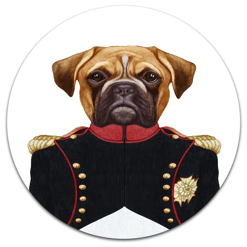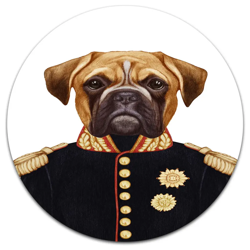 Pug Dog In Military Uniform, Animal Canvas Art Print, 16"x32"