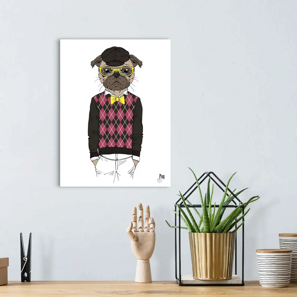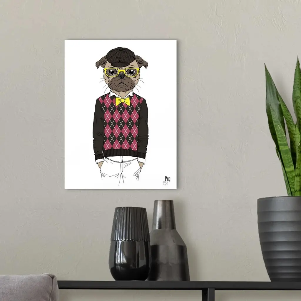 Contemporary illustrative artwork of an animal in hipster fashion against a white background.
